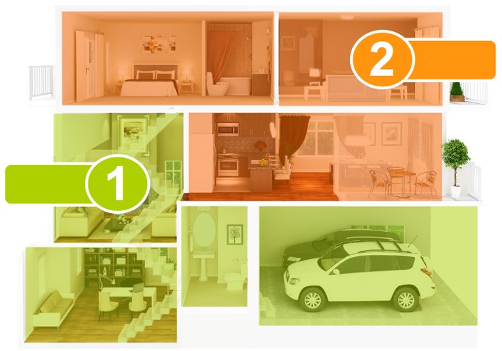 - возможность разделения на2 независимые подсистемы и 3 режима наблюдения(независимая постановка на охрану, например, первого и второго этажей)