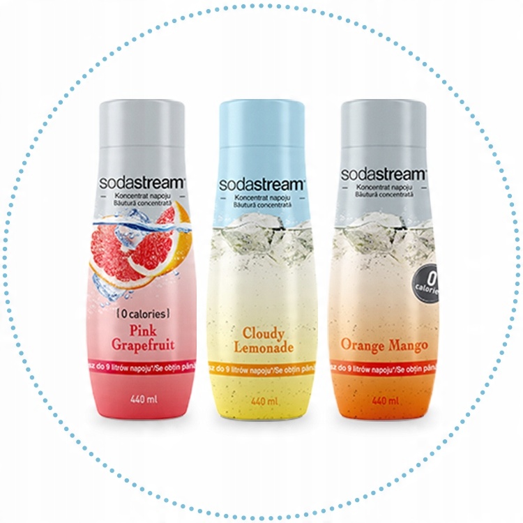 Предлагаемые вкусы включают: Pepsi Max, Pepsi, 7Up, Mirinda, Lemonade, Pink Grapefut (без сахара), Orange Mango (без сахара), Cola, Lemon Lime и Energy Drink с кофеин.