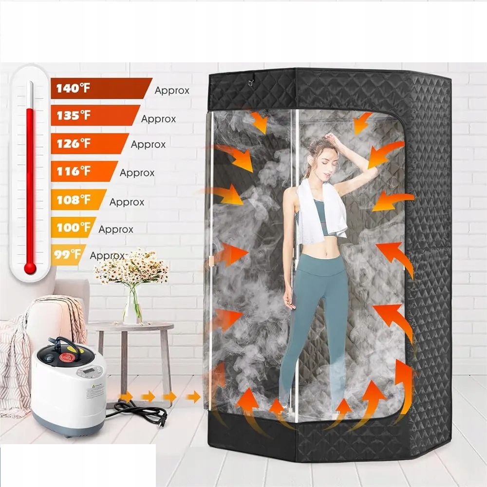 Sauna parowa domowa MOBILNA czarna WYDAJNA + Generator Pary + KRZESŁO Kpl