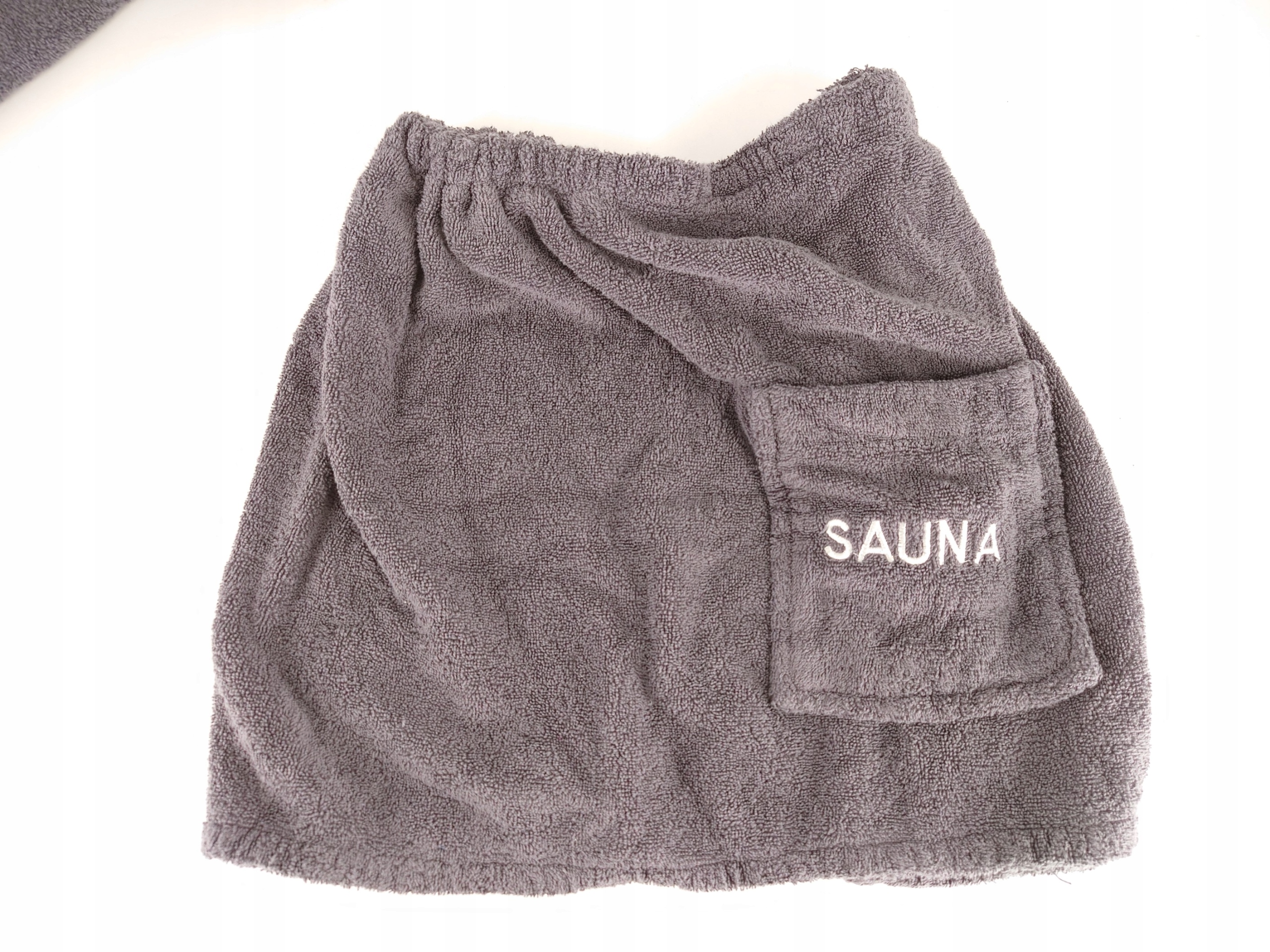 - Дизайн: по цвету края, усиленные берега, округлые углы, крепление липучки, гибкий ремень талии, карман с вышивкой "сауна".