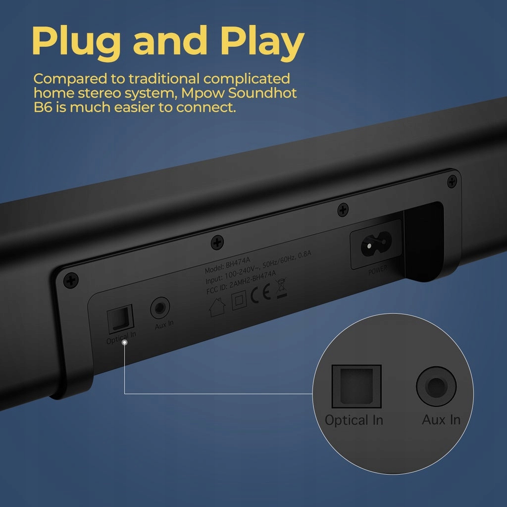 - Звуковая панель Mpow BH474A Soundhot B6 AUX OPTICAL BT