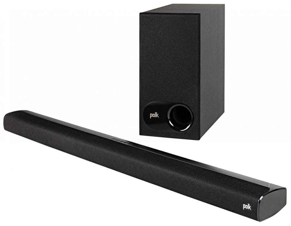 Запатентованная технология Polk Voice Adjust обеспечивает чистоту и ясность диалогов, декодирование Dolby Digital гарантирует реалистичный и эффективный объемный звук, а прилагаемый беспроводной сабвуфер восхищает глубина баса. Передавайте любимую музыку через Bluetooth®.