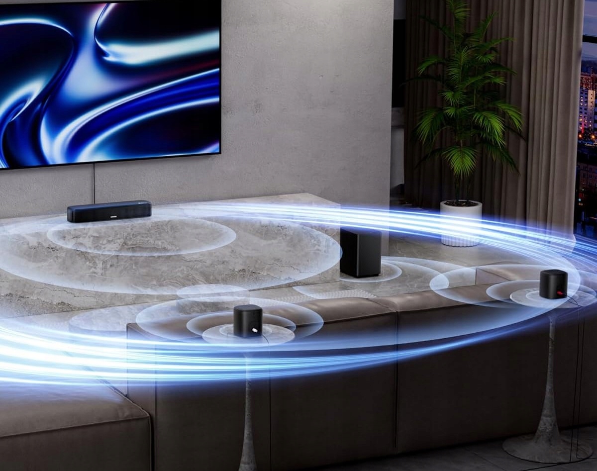 - 5.1-канальная система объемного звучания для телевизора: три основных звуковых канала, звуковая панель Ultimea для смарт-телевизора обеспечивает кристально чистое воспроизведение диалогов. Благодаря двум динамикам объемного звучания и сабвуферу он воспроизводит впечатляющий объемный звук и глубокие, мощные басы. Совет: рекомендуется для помещений площадью ≤ 20 м².