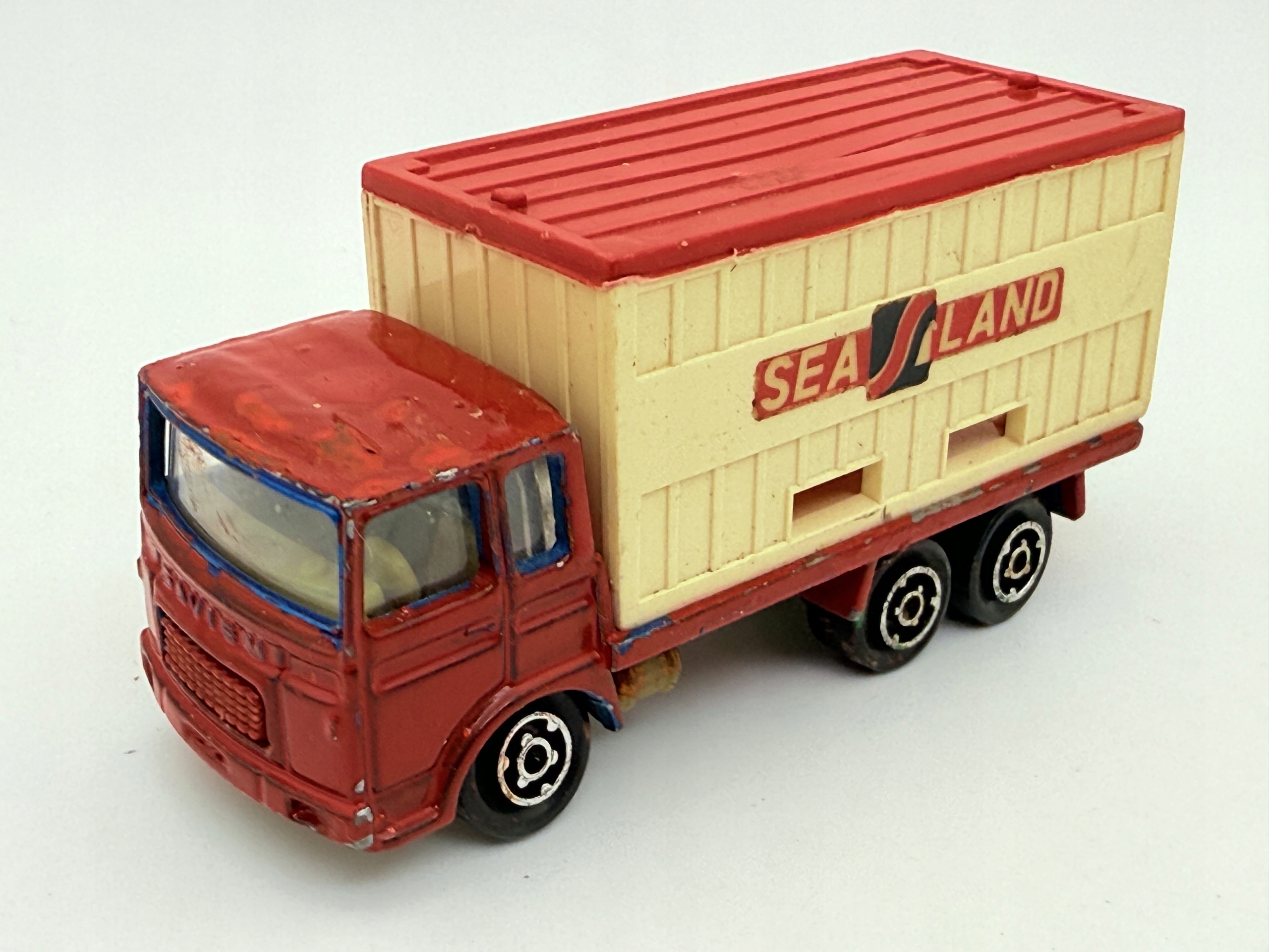 В пружинной модели показывается грузовик Saviem, который впечатляет его простым, но эффективным стилем. Изготовленный из комбинации металла и пластика, он твердый и хорошо воспроизводит детали оригинального автомобиля. Красный цвет тела контрастирует со светло -желтым полупрокатером, который имеет печать морской земли. Открытые двери добавляют интерактивность, что делает эту модель привлекательной для коллекционеров. Он показывает следы использования, которые свидетельствуют о его истории, но это не уменьшает его очарование.