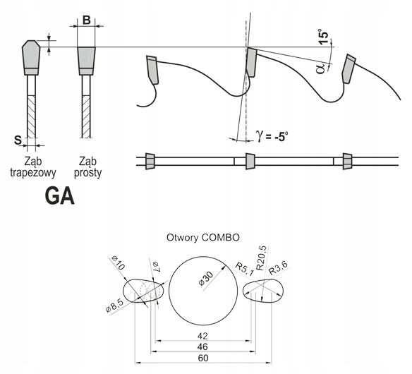 - Геометрия зубов: ga