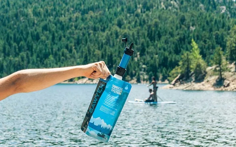 Произведен американской компанией Sawyer Sawyer Mini SP105 Filter в черном. Это позволяет вам отфильтровать более 370 000 литров воды, идеально подходит для поездок, очень легких.