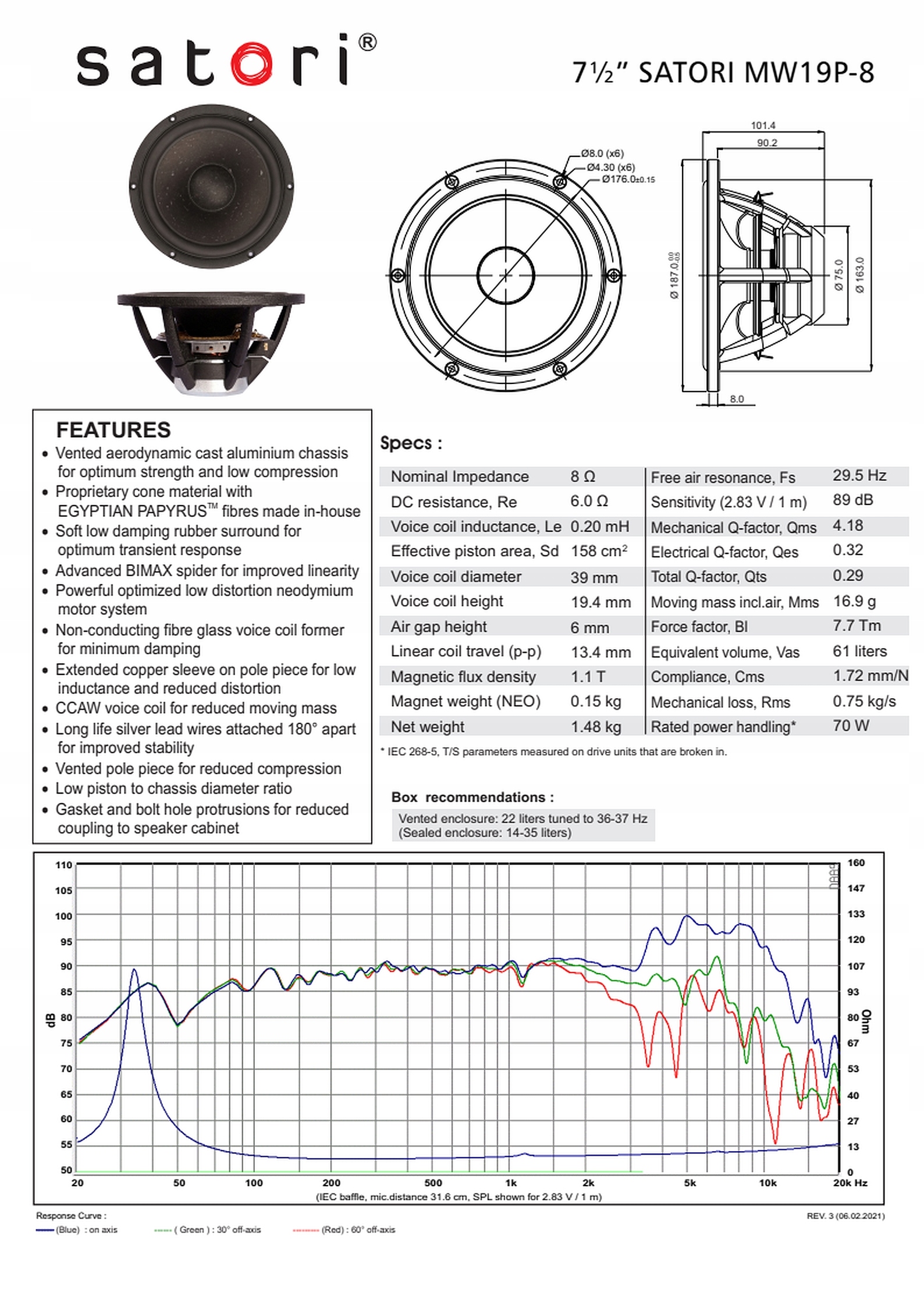 SB Acoustics 7.5″ SATORI MW19P-8 / Середньочастотний динамік з паперу