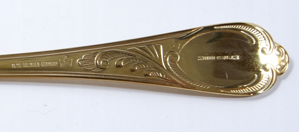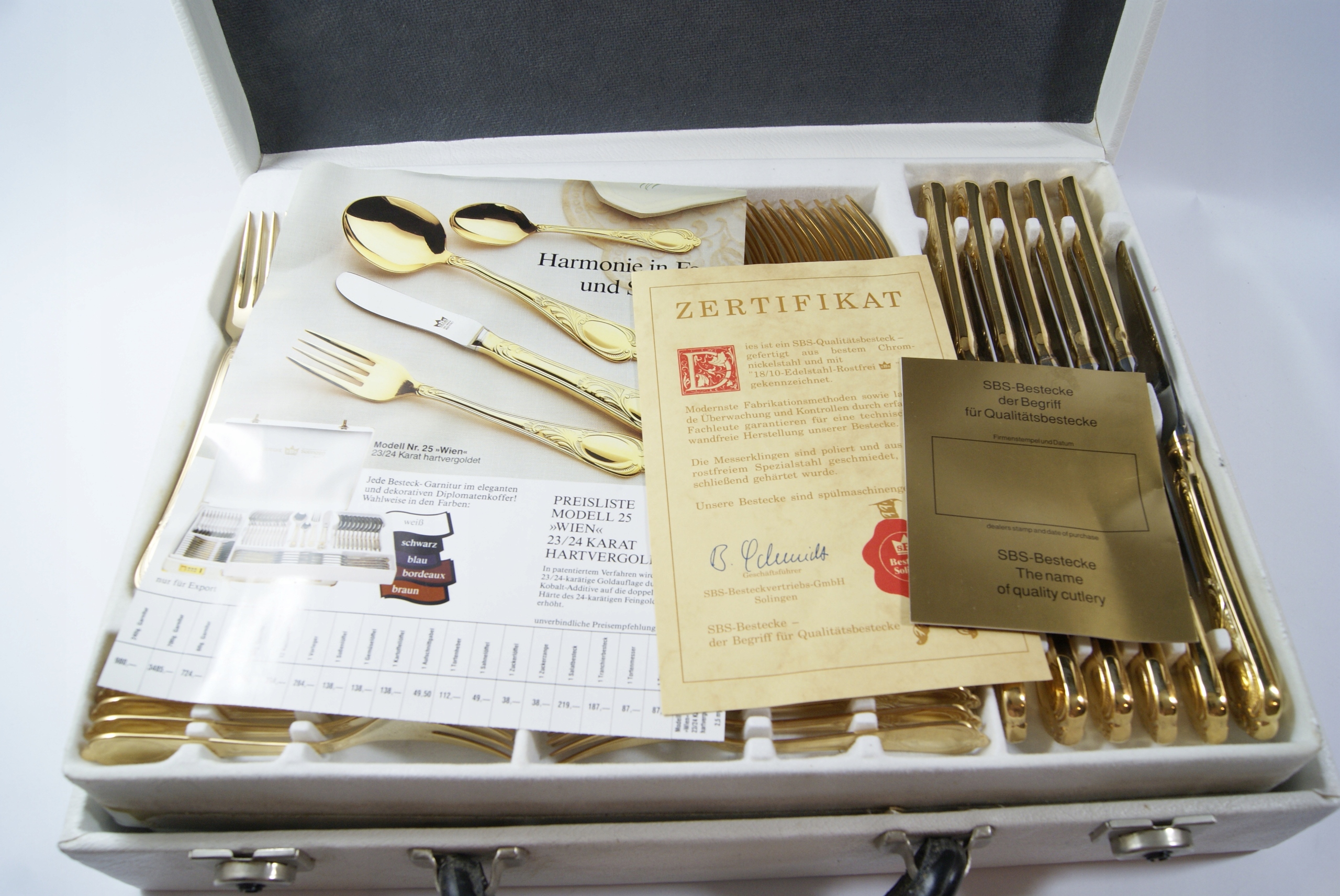 SBS SOLINGEN BESTECKE - Красивые, старинные позолоченные столовые приборы из 23/24-каратного золота, набор на 12 персон, как на фотографиях.