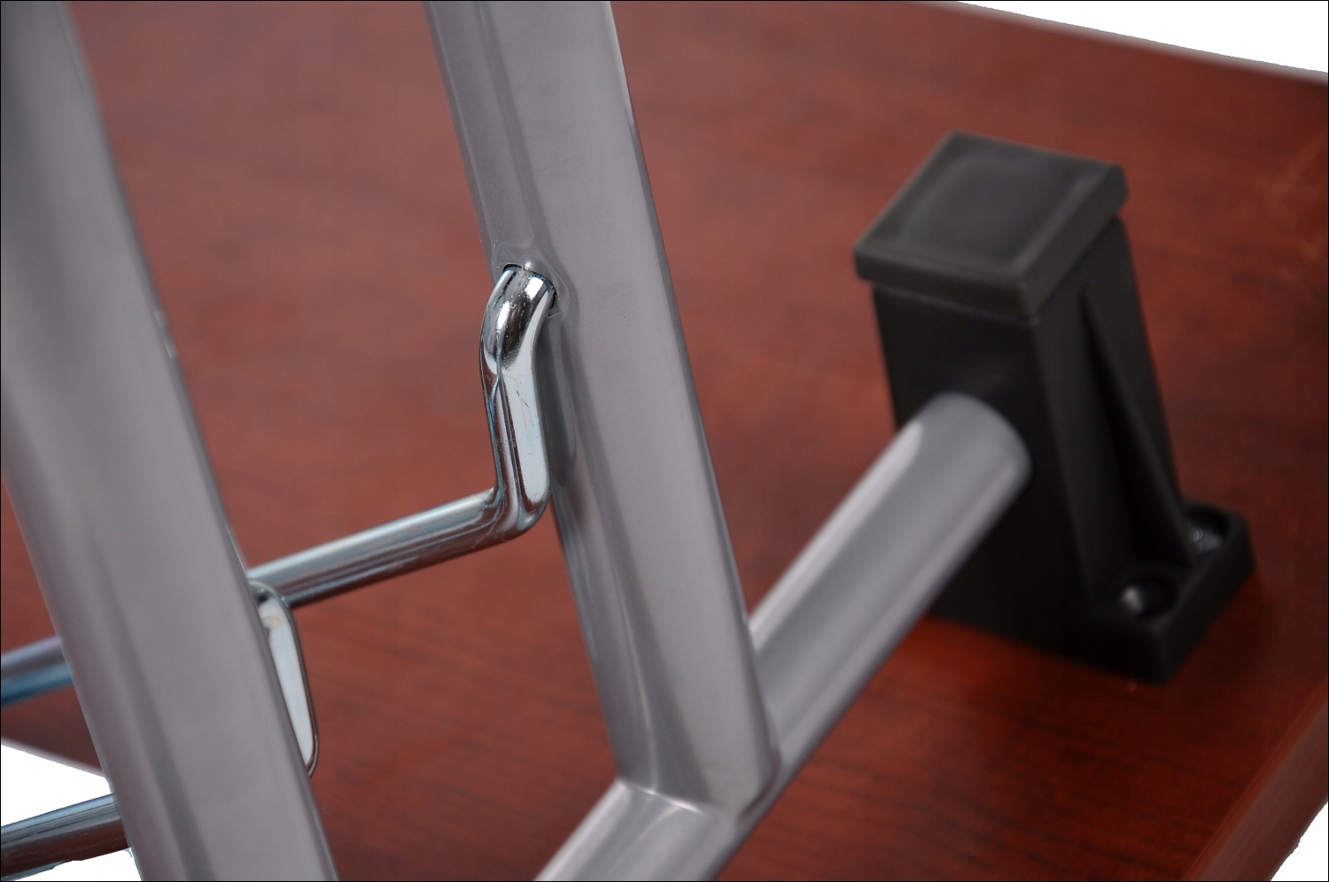 <р> складной металлический каркас, состоящий из двух ножек и складного механизма <р> доступен в двух размерах: 590 и 480 мм <р> ножки оснащены регулируемыми ножками <р> столы можно штабелировать <р> с порошковым покрытием черного матового цвета или алюминия. <р> поставляется в небольших упаковках - для самостоятельной сборки <р> адаптирован для столешниц различной длины с минимальной шириной 50 см и длиной 120 см