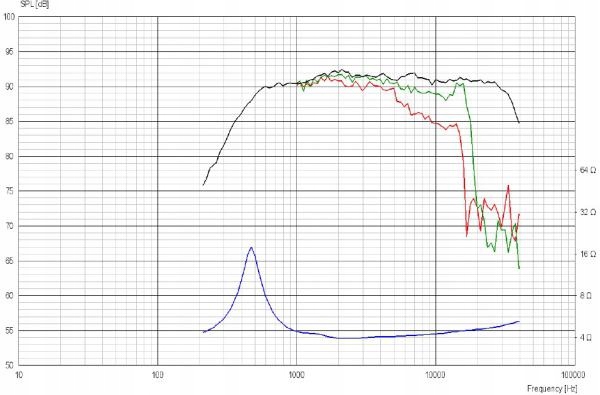 D3004/662000 — специальная версия D3004/660000 с измененной передней частью; к нему добавлен демпфирующий элемент в форме «клевера», и хотя может показаться, что это всего лишь украшение, призванное сделать твитер Illuminator похожим по внешнему виду на НЧ-СЧ-диафрагмы Illuminator, имеющие тиснения такой формы, просто посмотрите на характеристики и убедитесь... в случае с D3004/660000 уже отлично, могло быть и лучше! Мы получаем почти идеальную линейность вплоть до 30 кГц со спадом -6 дБ на частоте 40 кГц и еще лучшее рассеивание на частоте 15 кГц.