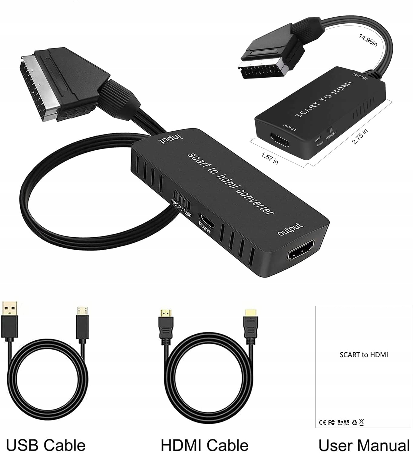 - Высокотехнологичная передача сигнала: конвертер Scart в HDMI обеспечивает передовую технологию обработки сигнала для преобразования композитного сигнала в выходной сигнал 720P или 1080P с помощью кнопки переключения для обеспечения высокой точности цвета и разрешения видео. Никаких потерь сигнала или ошибок передачи.
