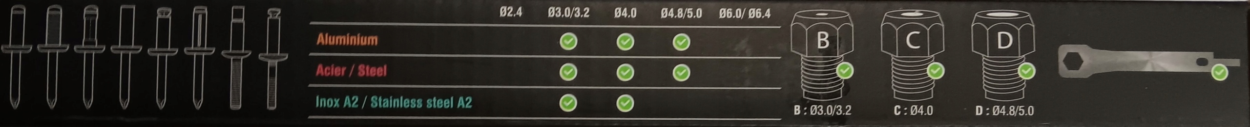 Профессиональный заклепочник для легких монтажных работ. Дополнительный комплект насадок.