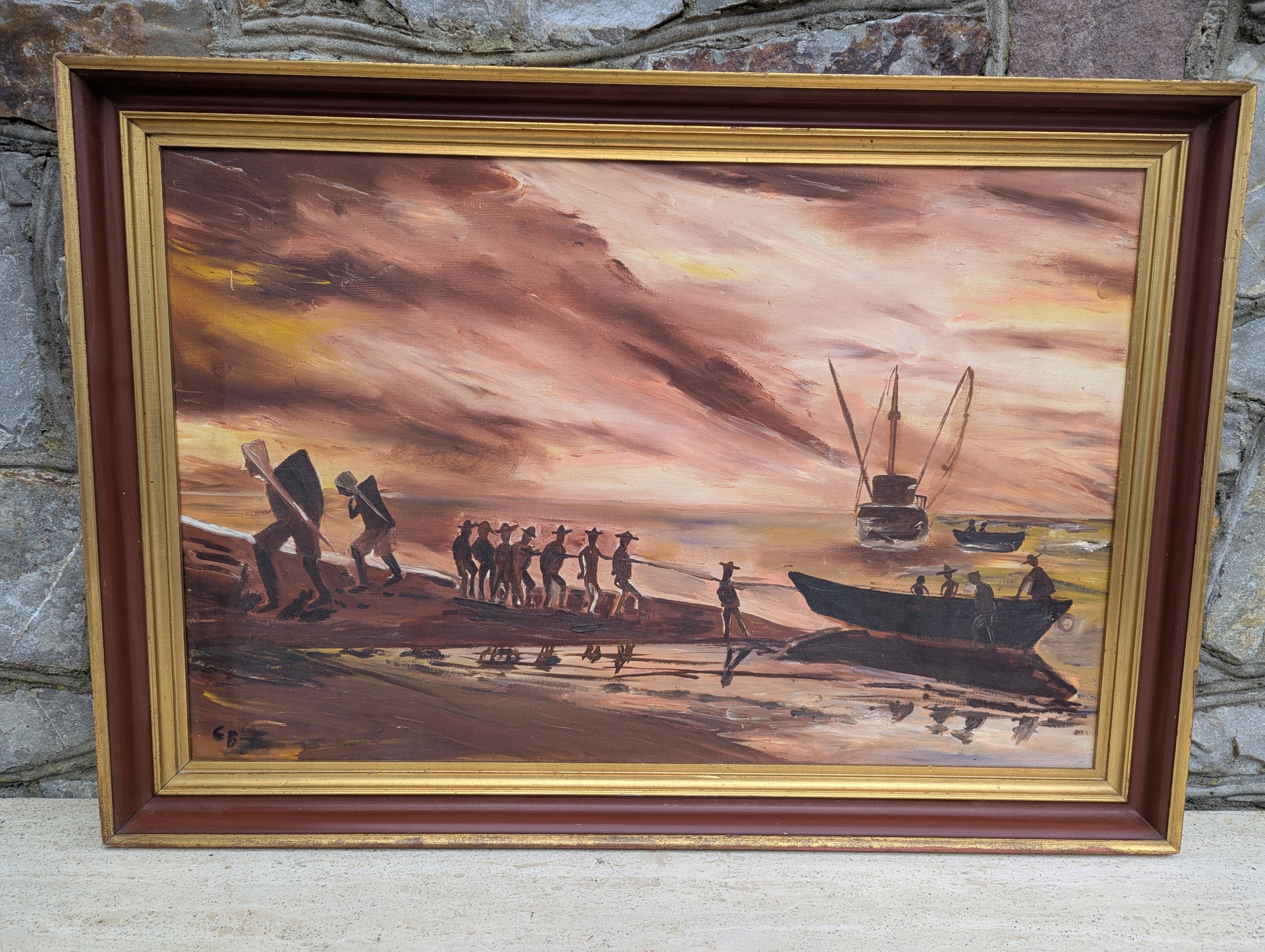 Сцена на табличке «Пляж». Золотая рамка Артвикинг