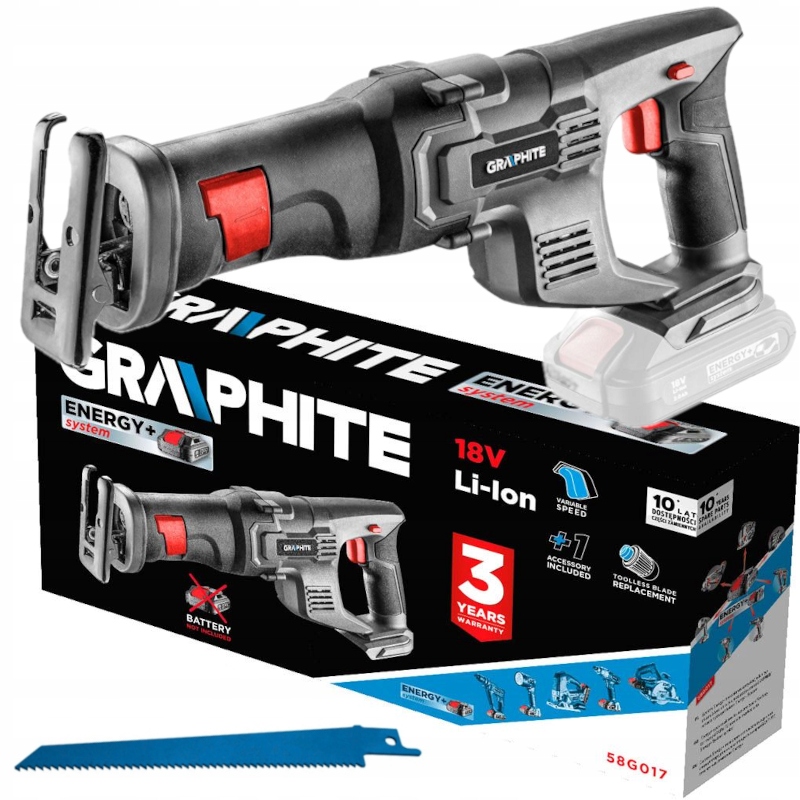- Graphite Sabre Saw (Ref. 58G017) , сотрудничая с батареями 18V Литий-ионной графитовой энергией+, , предназначенной для резки дерева, металла и пластмасс.