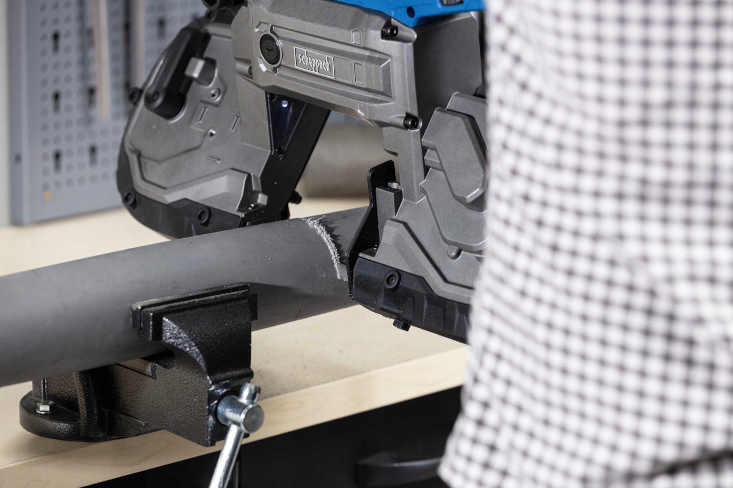 - С ленточной пилой по металлу Scheppach MBS1200xt укорачивание труб и металлических профилей никогда не было таким простым.