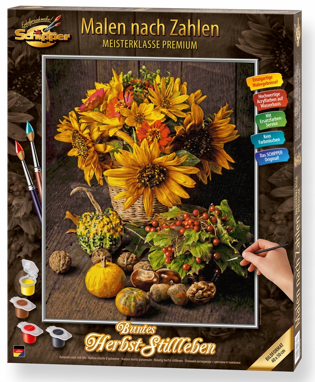 Оплачивая «SCHIPPER Малювання за номерами Осінні квіти» данный товар из каталога «Картина по номерам» вы можете быть уверены, что после оформления заказа, доставки в Украину, вы получите именно то, что заказывали, в оговоренные сроки и европейского качества.