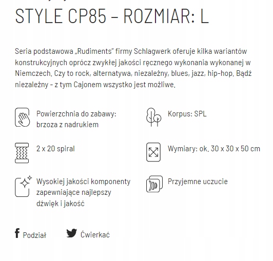 Schlagwerk CP85 Rudiments Styles — уникальный ударный инструмент из серии «Rudiments», предлагаемый известной немецкой компанией Schlagwerk. Этот инструмент, доступный в нескольких вариантах конструкции, предлагает исключительное качество сборки и универсальность звука, что делает его идеальным выбором для начинающих, играющих рок, альтернативу, инди, блюз, джаз, хип-хоп и многие другие музыкальные жанры.