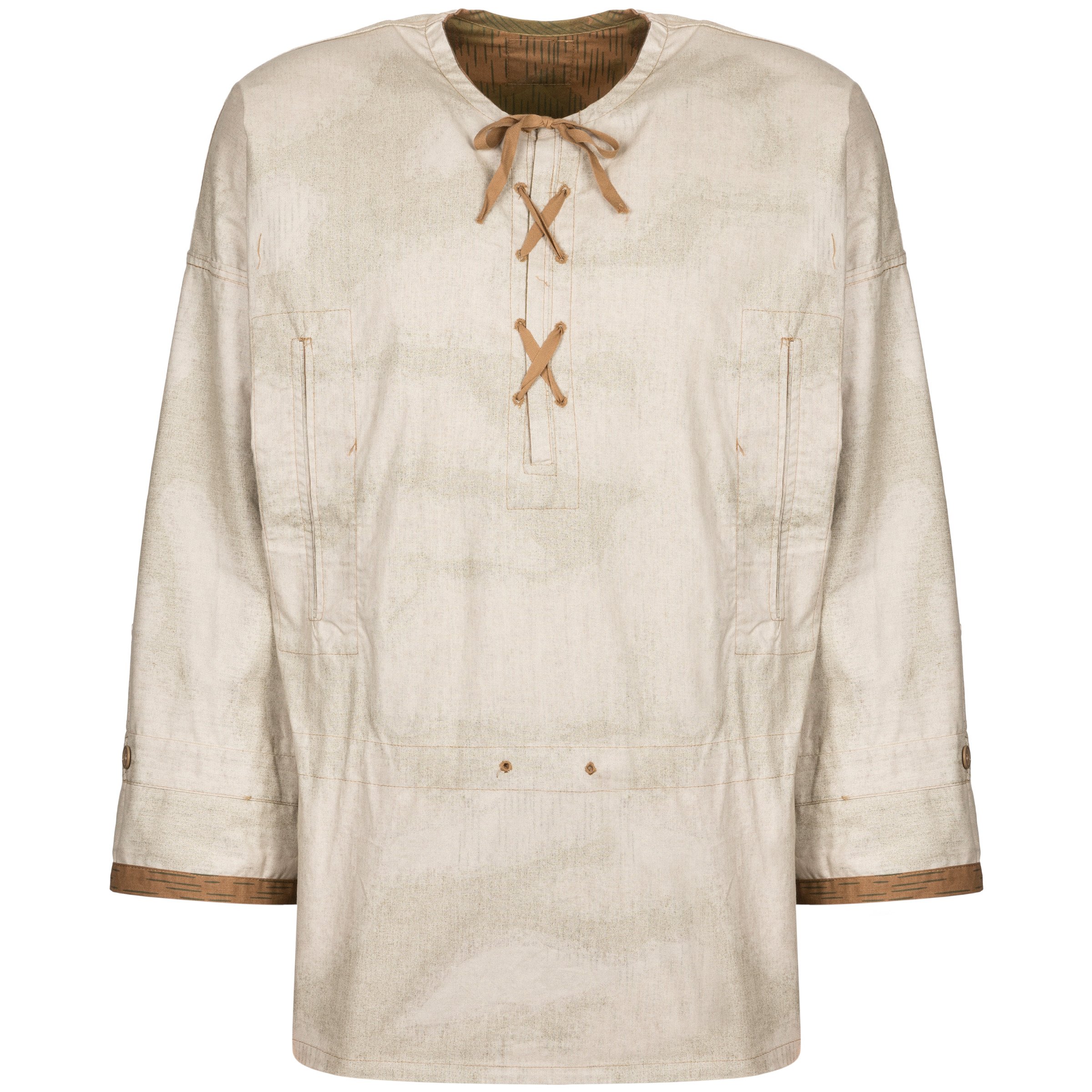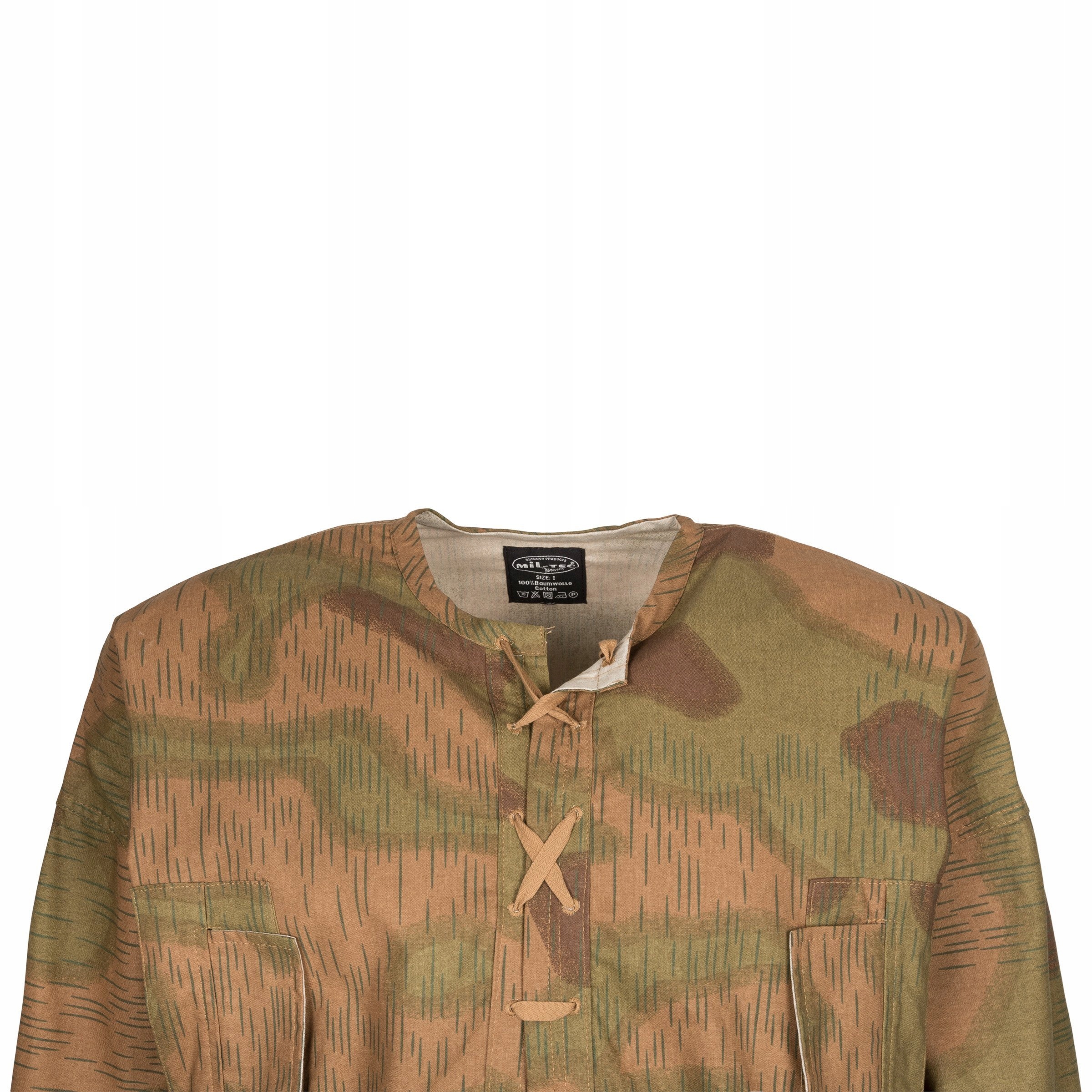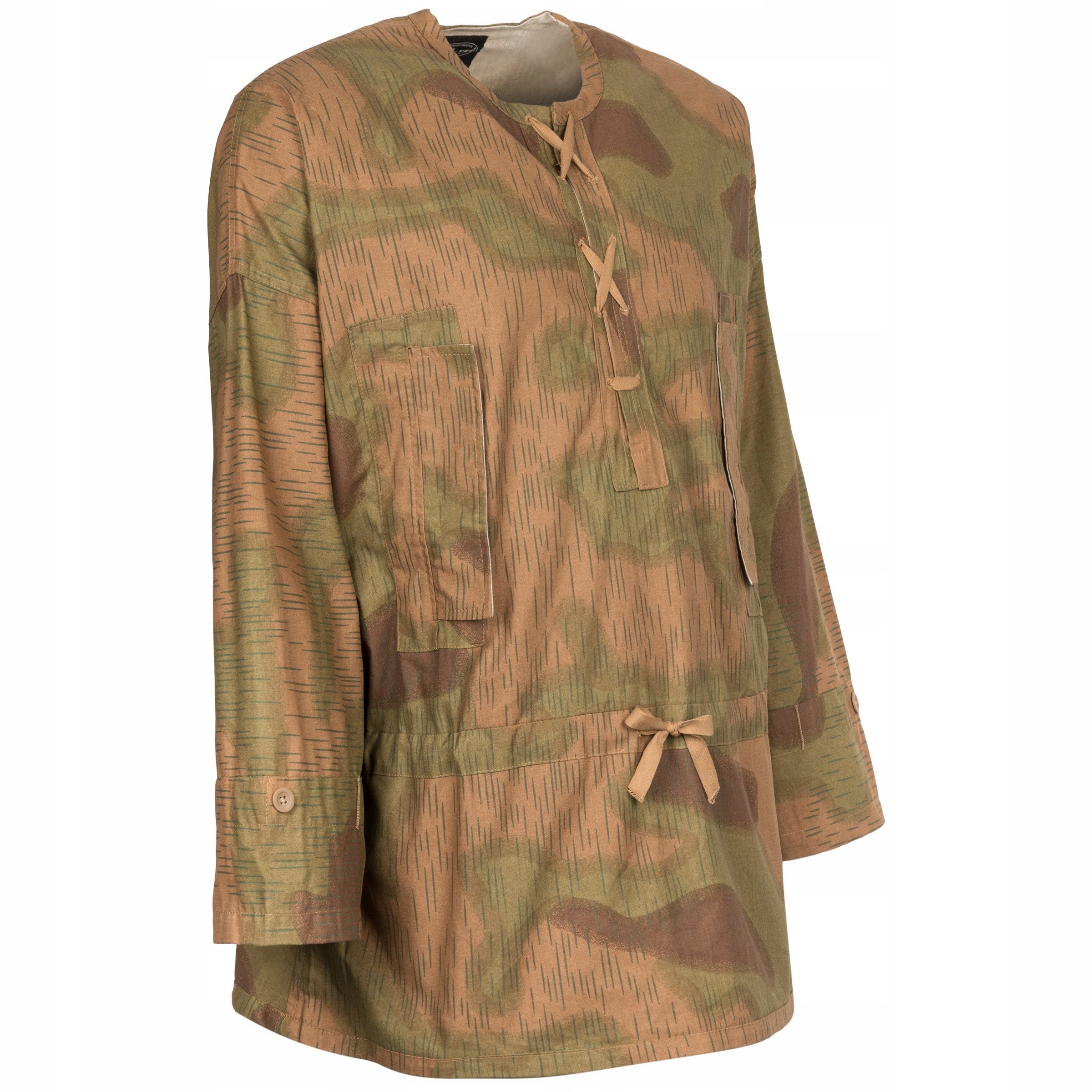 Точная копия камуфляжной куртки Schlupfhemd Sumpftarn. Используется немецкими солдатами в качестве камуфляжа, надевается поверх форменной рубашки. Идеально подходит для реконструкции, используется не только немецкими войсками, но и варшавскими повстанцами. К цветам, видимым на экране, следует относиться с большой осторожностью - цвета, видимые на экране, могут быть искажены настройками монитора и экспозицией, использованной при съемке фотографий.