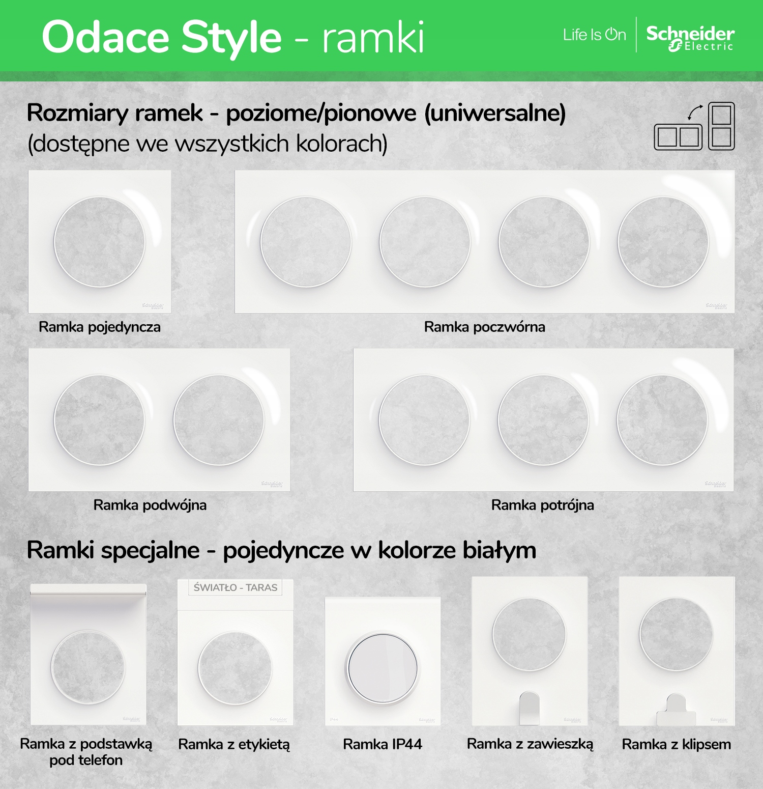 Серия Odace Schneider Electric была разработана интересным образом с учетом эстетики и комфорта в вашем доме/квартире. Секрет ассортимента Odace — круглая форма разъемов и розеток, а также цвета, позволяющие сочетать разные стили и предпочтения. Уникальность серии подтверждается, среди прочего, сдержанными круглыми разъемами и разъемами, закругленными углами разъемов, качественными материалами и тщательной обработкой. Каждый найдет что-то для себя – как тот, кто умело выбирает цвета и ищет современный дизайн, так и тот, кто ценит простоту дизайна и удобство использования.