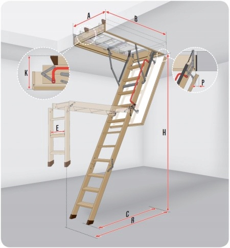 Модель LWK Plus – наиболее часто приобретаемая чердачная лестница с деревянной лестницей.