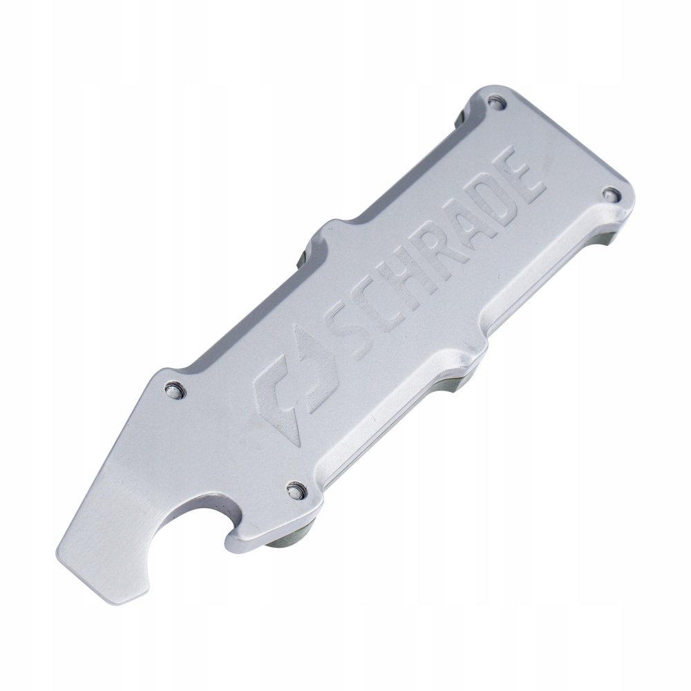 Режущий инструмент представляет собой сменное лезвие для моделирования Xacto, убирающееся с помощью кнопки. Профилированная рукоятка, в которой находится лезвие, изготовлена из комбинации алюминия и композита G10. Это позволяет комфортно работать даже в тактических перчатках без риска соскальзывания рук. Кроме того, в комплект поставки входит дополнительный инструмент, совмещающий в себе функции миниатюрного лома и открывалки для бутылок.