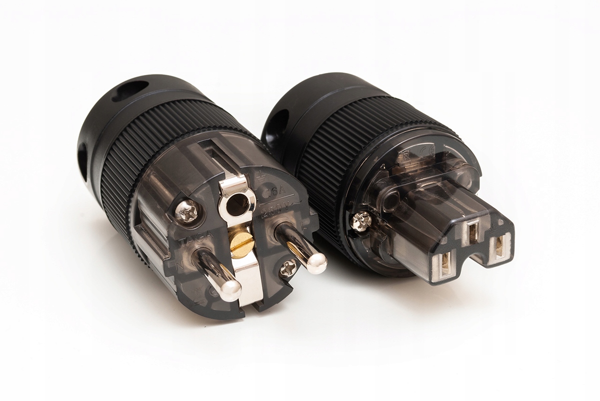 Высококачественная вилка Schuko и разъем IEC с контактами и заземлением из немагнитной латуни с родиевым покрытием обеспечивают отличную проводимость, изоляцию и соединение.