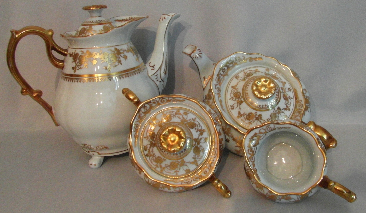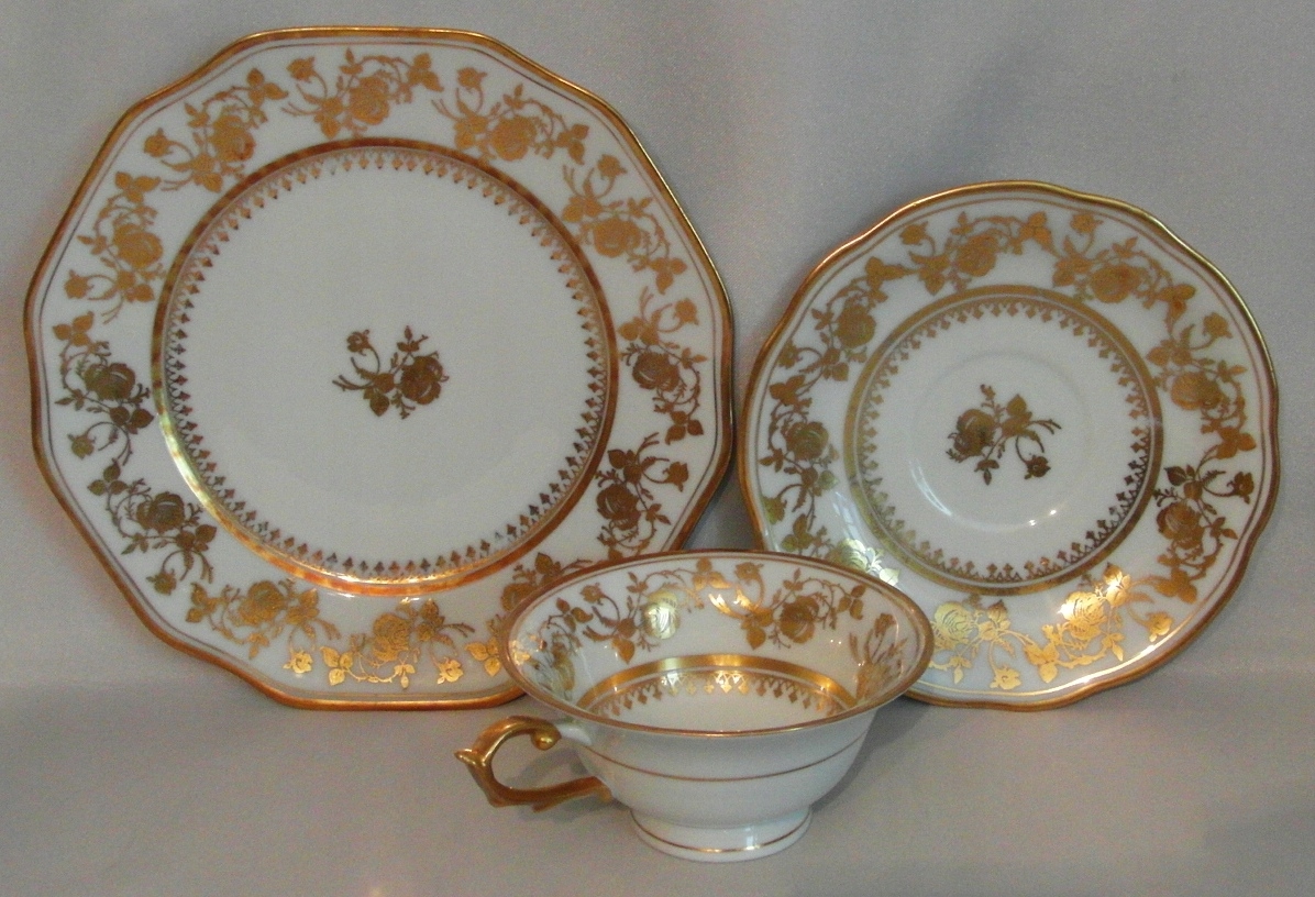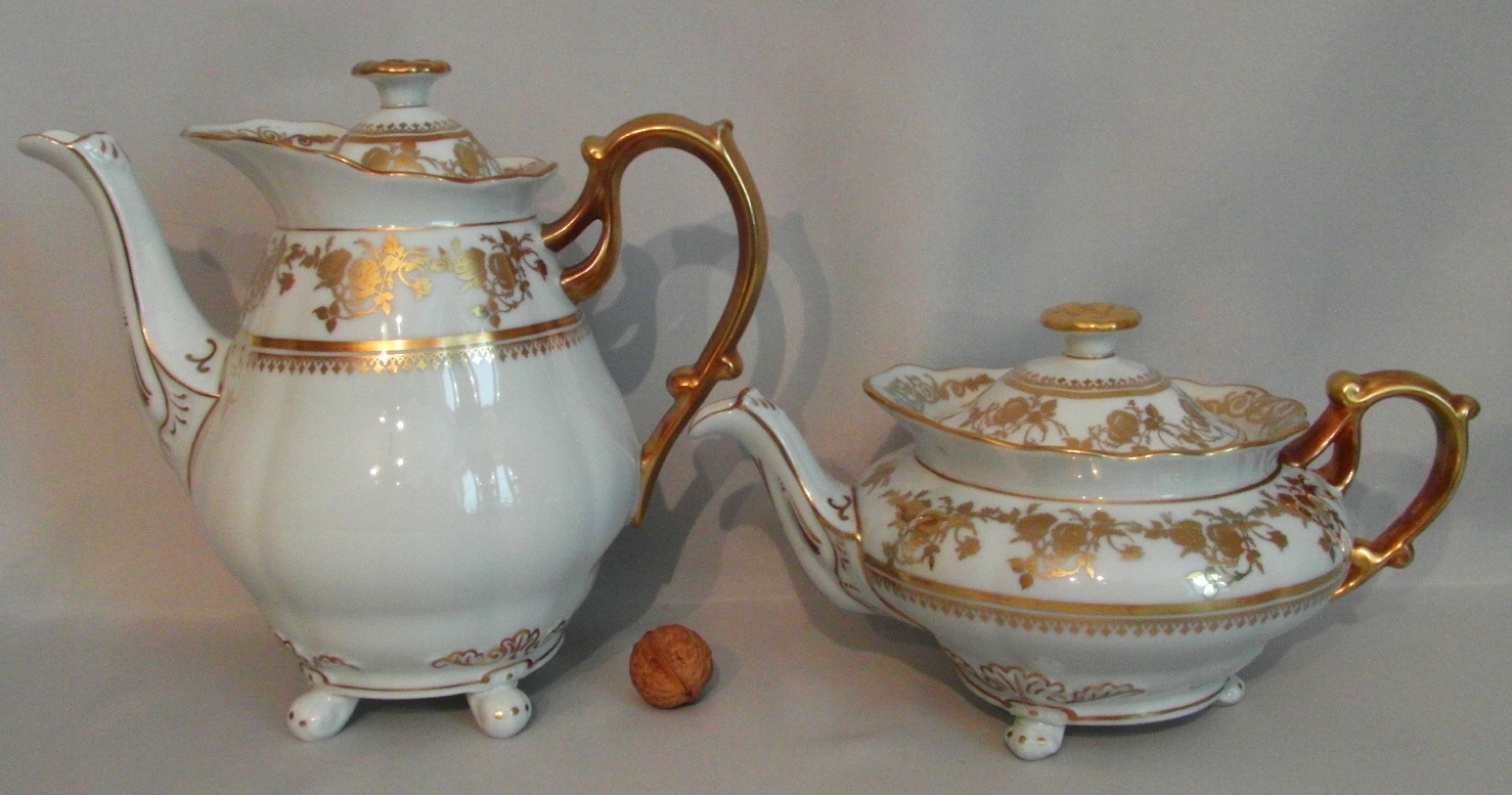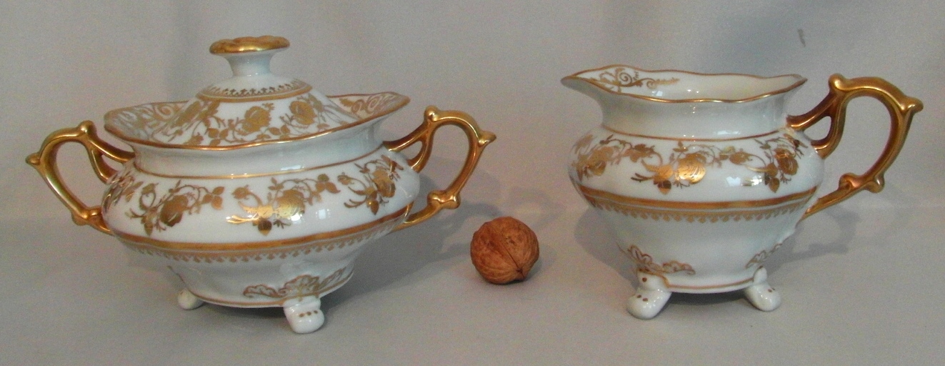 Белый фарфор, привлекательная общая форма. Декоративная позолота.