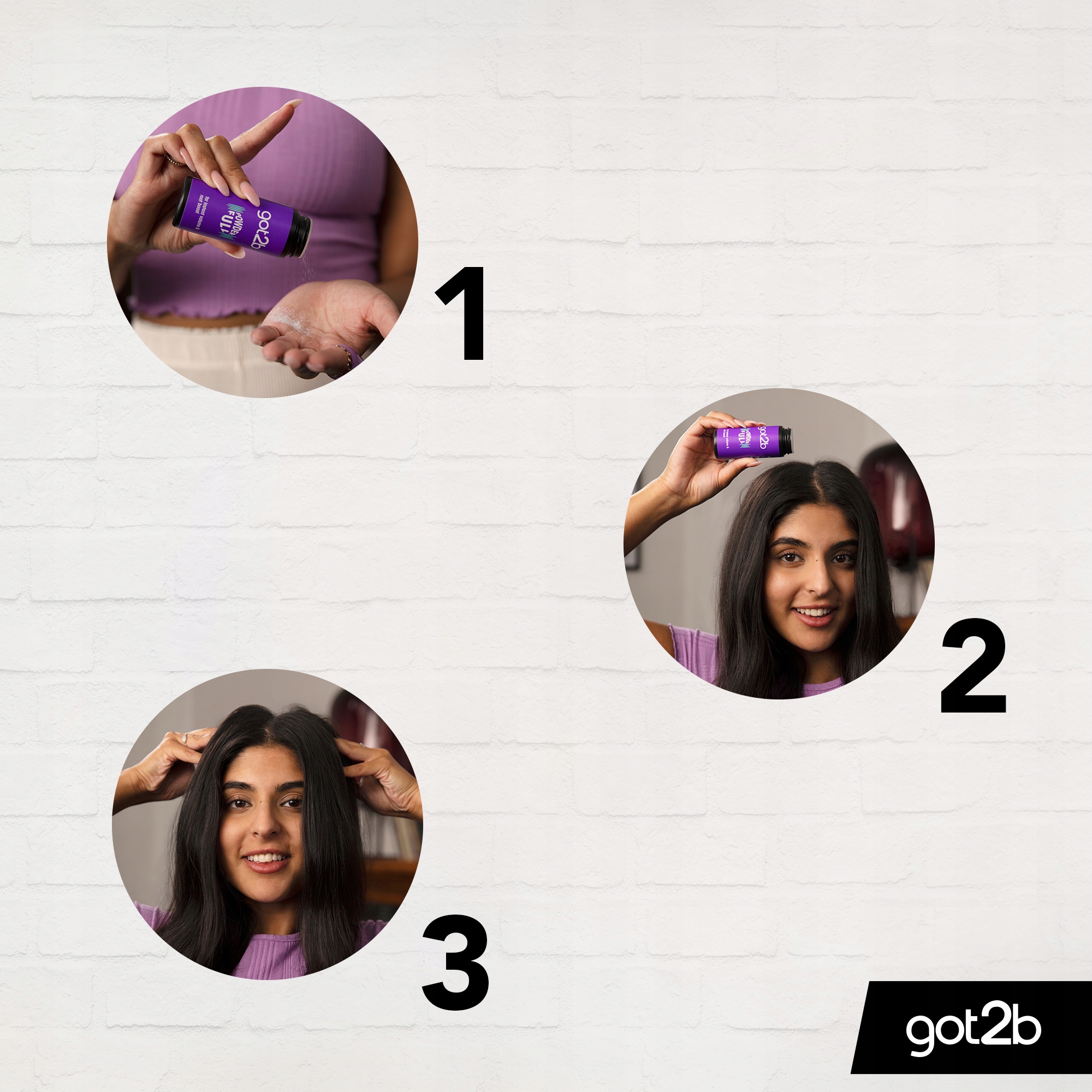 - растирайте небольшое количество пудры в руках, смотрите, как пудра растворяется, наносите на сухие волосы у корней и укладывайте!