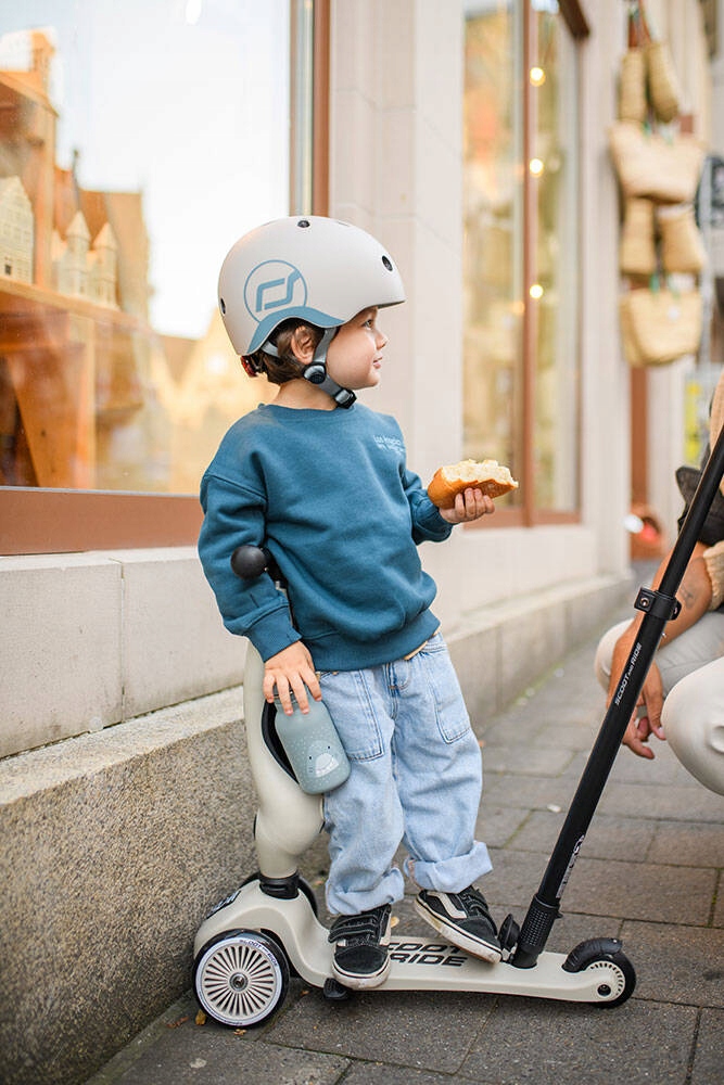 Scoot & Ride — австрийский производитель трехколесных самокатов Highwaykick и сверхлегких шлемов. Флагманский продукт бренда – модель Highwaykick 1 для детей от 1 года. , который представляет собой транспортное средство 2-в-1 — коляску и самокат.