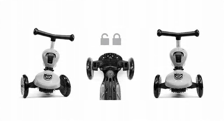 Без использования инструментов , одним нажатием кнопки вы можете за несколько секунд превратить автомобиль в самокат на 3-х колесах — повернутое сиденье становится его передней рамой. Просто двигаем руль (устанавливается со щелчком) и все! Теперь и старший тоже может начать свое приключение.