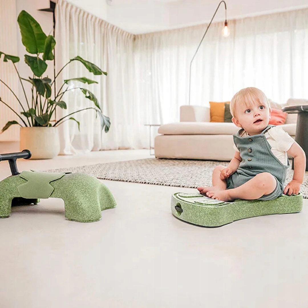 Поездка была проведена из необычного материала - EPP (пеночный полипропилен), который из -за его уникальных свойств, используется, среди прочего, в защите шлемов (например, циклирования) или для производства автомобильных сидений. Это легкий, и в то же время чрезвычайно прочный материал, устойчивый к внешним факторам - не только воду или температуру, но даже механические факторы, такие как воздействие. Этот материал идеально переносит большие перегрузки и амортизаторы, и в то же время «дружелюбно» для окружающей среды - пола, стены или мебель (с столкновением он не вызывает царапин, складки и т. Д.) И подходит для утилизации.