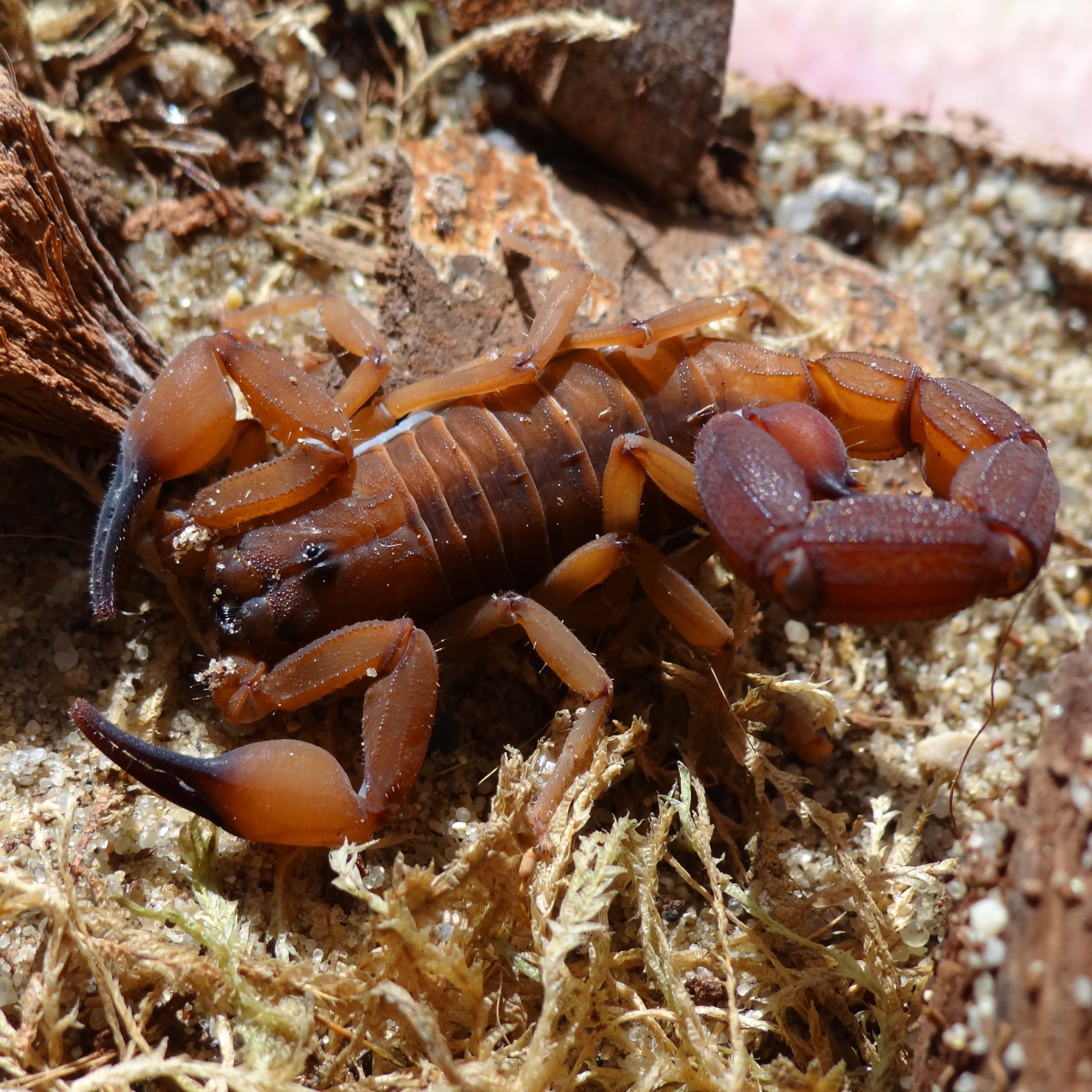 Образ жизни: Нарвед и ночь. Этот скорпион часто остается под корой деревьев, в мусоре и под камнями.