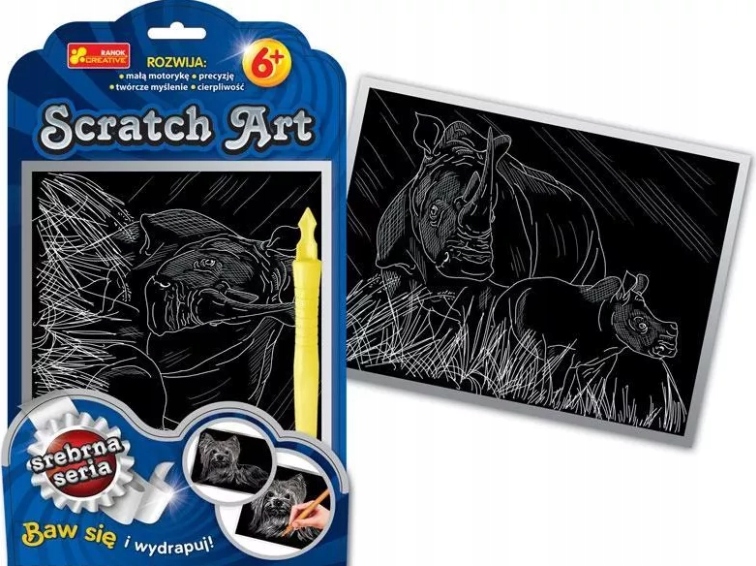 SCRATCH ART WYDRAPYWANKA SREBRNA SERIA NOSOROŻEC
