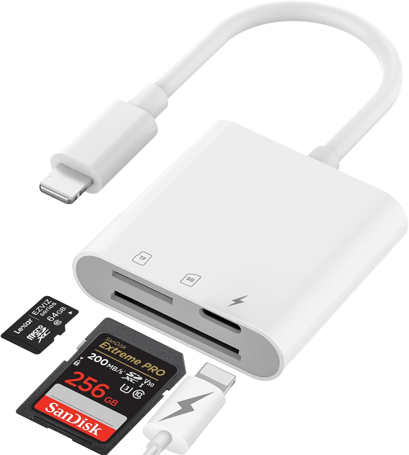 Устройство чтения карт SD для iPhone поддерживает двустороннюю передачу для iOS 13.0 или более поздней версии. Импортируйте фотографии, видео и файлы с карты SD/IF на iPhone/iPad или экспортируйте фотографии, видео и файлы с iPhone/iPad на карту SD/TF. Это устройство чтения карт SD имеет дополнительный порт для зарядки по сравнению с другими устройствами чтения карт, который может синхронизировать данные во время зарядки вашего iPhone, чтобы обеспечить достаточный заряд аккумулятора.