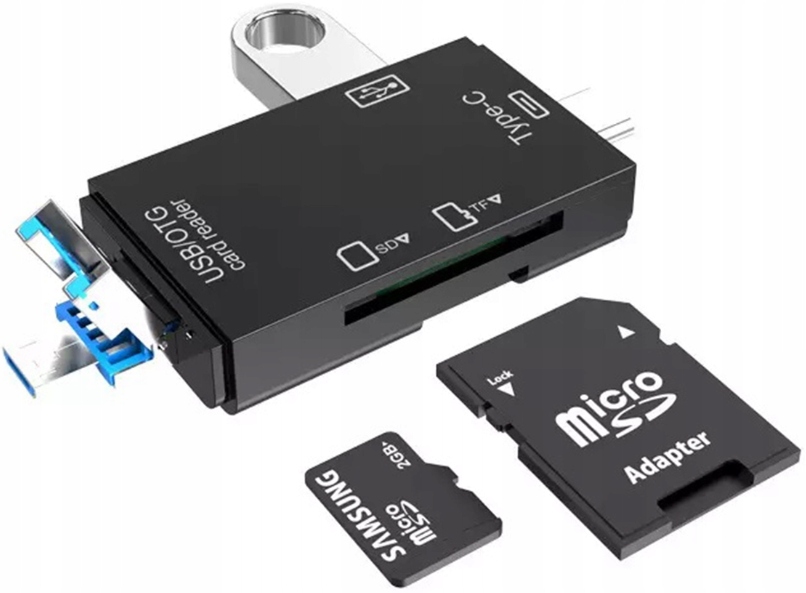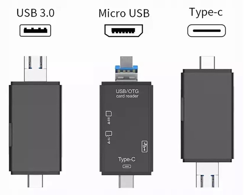 - Считыватель имеет 3 USB-порта (USB типа A , micro-USB и USB-C), что позволяет легко подключить его практически к любому устройству (например, к смартфону).