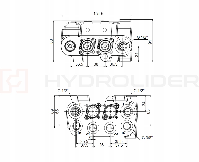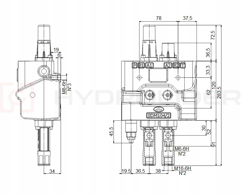 Гидравлический дистрибьютор 2 Секция 45L SDM-104