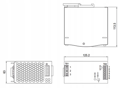 Импульсный источник питания, установленного на рельсе TS35/7,5 или 15 DIN, устойчиво к высоким рабочим температурам (до 70 ° C)