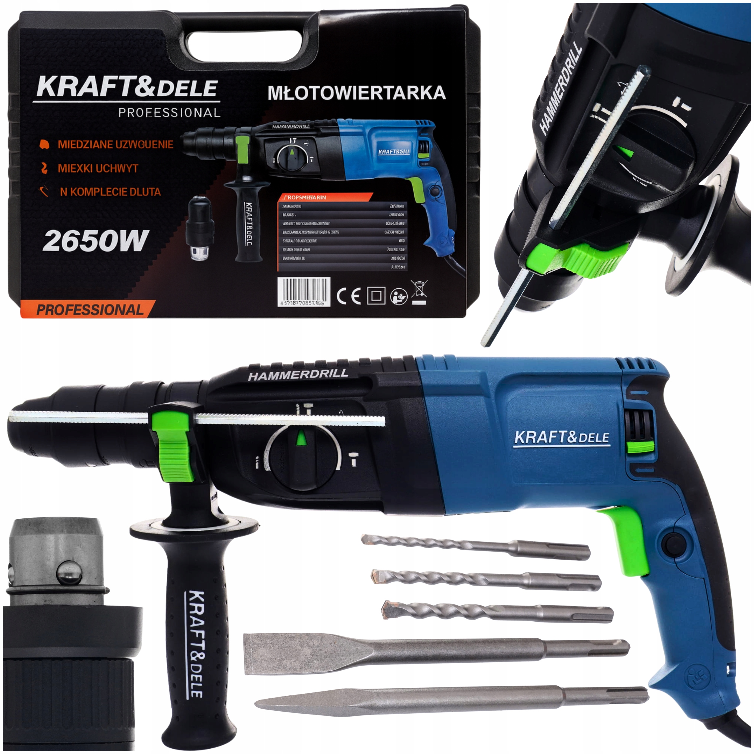 ✅ Mocy 2650W Двигатель b> - копирует с бурением даже в твердом бетоне и камне.
