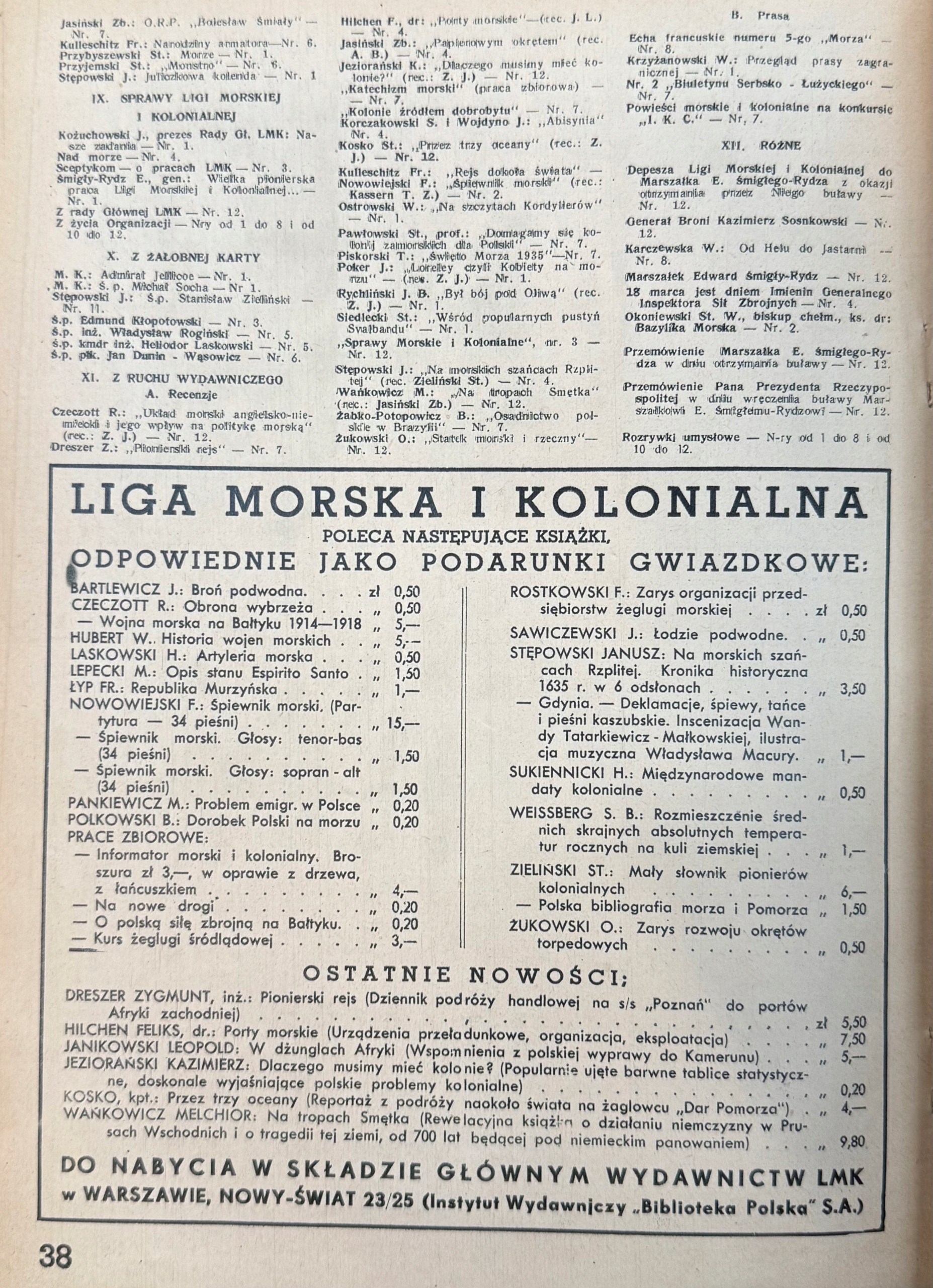 Журнал «море» был официальным органом морской и колониальной лиги - одной из самых важных общественных организаций второй Польской Республики, способствующей идее «моря и колониальной Польши». Эта публикация была журналистским, образовательным и пропагандистским форумом, сочетающим вопросы морской экономики, навигации, колониальной политики и важности доступа к Польше к морю.