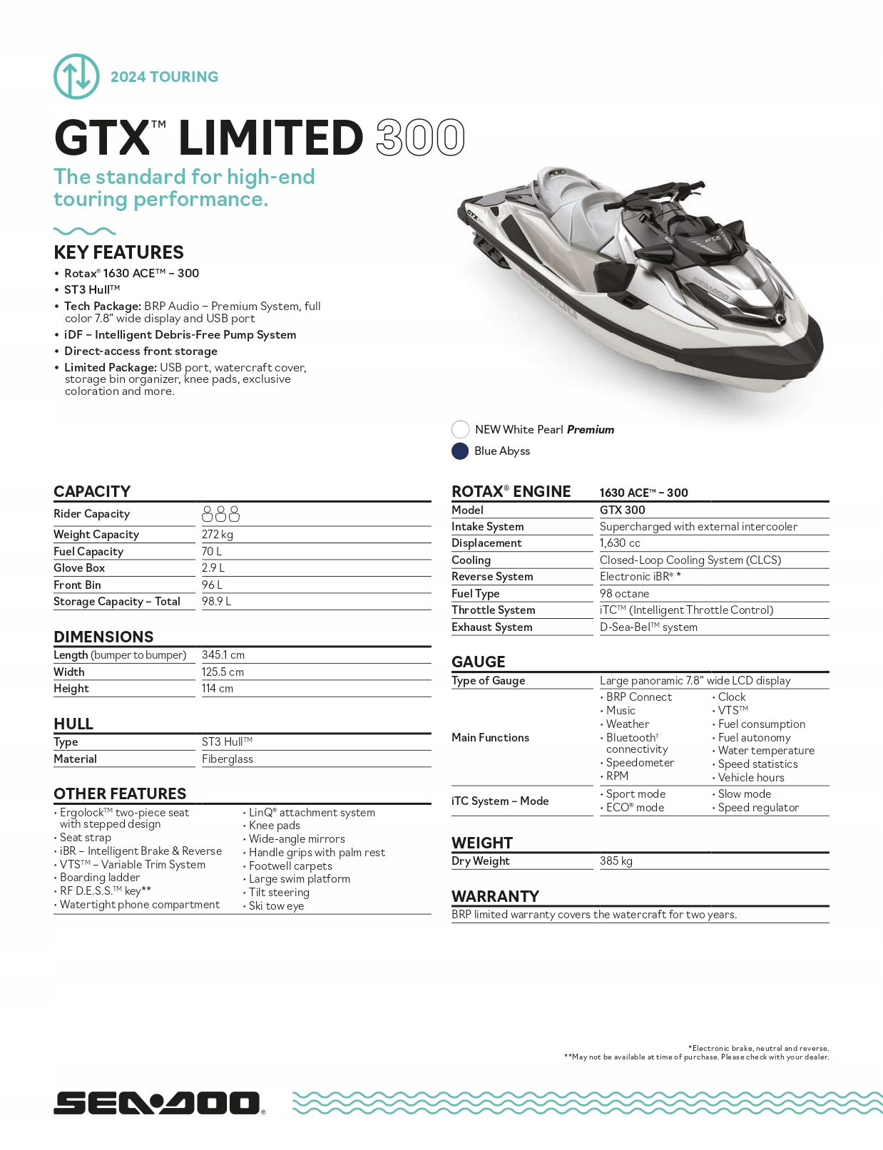 Sea Doo Gtx Ltd 300 IDF Tech Package 2024 Water Scooter