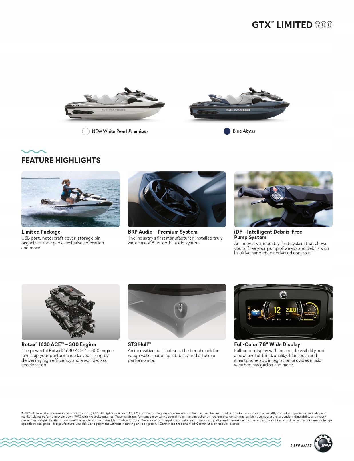 мы являемся авторизованным дилером из BRP, Sea Doo и Can Am h1> на сегодняшнем объявлении I Present: h1> Water Scooter Gtx Ltd 300 IDF Tech Package H1> Model 2024 H1> Color: Blue Abyss h1> код продукта. Код.