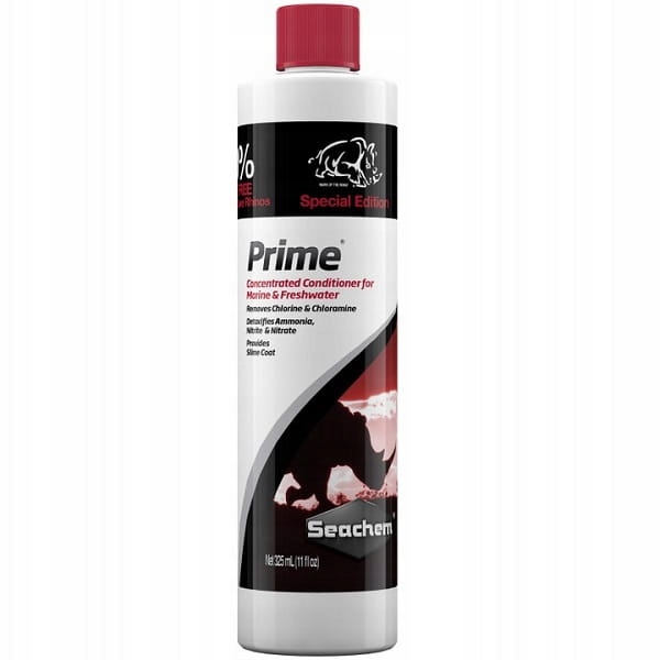 Прайм — концентрированное средство для очистки воды, предназначенной как для пресноводных, так и для морских аквариумов. Нейтрализует хлор, хлорамин и аммиак, переводя их в нетоксичную форму, быстро удаляемую биологическим фильтром. Его можно использовать в процессе созревания в резервуаре для снижения уровня аммиака и нитритов. Связывая нитраты и нитриты, он облегчает их удаление биологическими фильтрами. Он также нейтрализует тяжелые металлы, присутствующие в водопроводной воде. Ускоряет выработку и регенерацию защитного слизистой слоя на теле рыб. Он не кислый и не влияет на pH воды. Не перегружает скиммер. Его рекомендуется добавлять при обустройстве нового аквариума и при каждой смене воды.Многие компании выпускают препараты, нейтрализующие хлор в воде, но ни один из них не обладает такой эффективностью, как Prime производства Seachem. Это второй кондиционер для воды по концентрации активных веществ после препарата Альфа из линейки AquaVitro того же производителя.