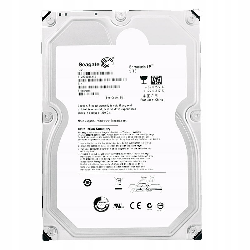 Оплачивая «Seagate 2 ТБ ST32000542AS 5,9K 32 МБ Sata 2 3,5 дюйма», вы можете быть уверены, что данное изделие из каталога «Жесткие диски» будет доставлено из Польши и проверено на целостность. В цене товара, указанной на сайте, учтена доставка из Польши. Внимание!!! Товары для Евросоюза, согласно законодательству стран Евросоюза, могут отличаться упаковкой или наполнением.