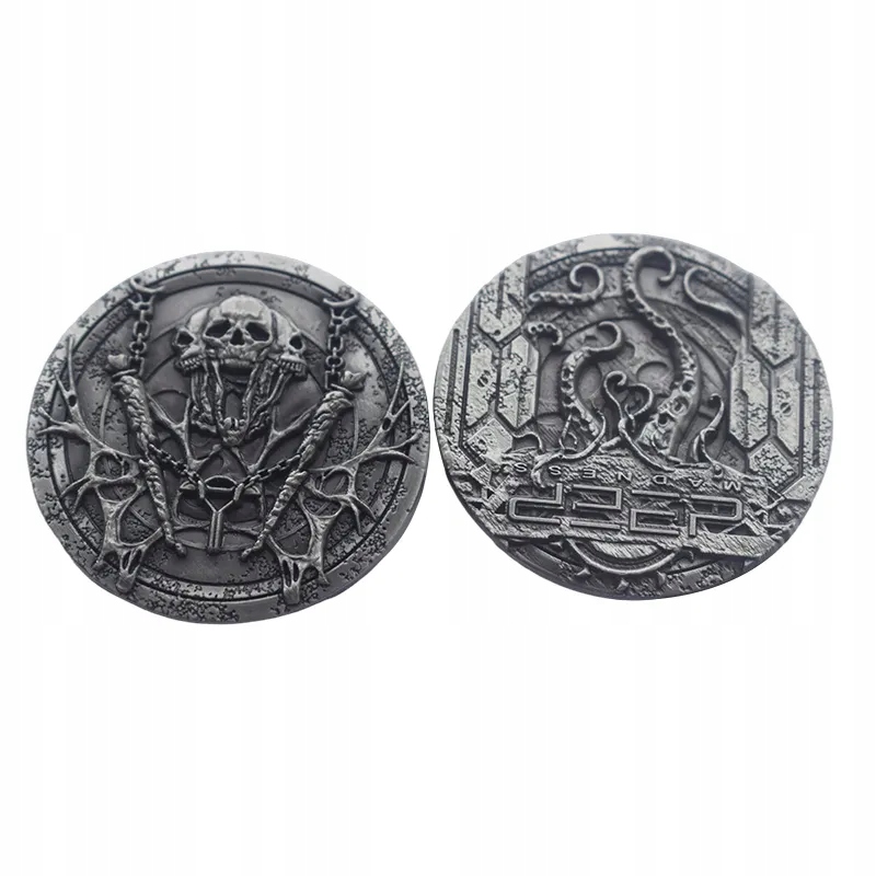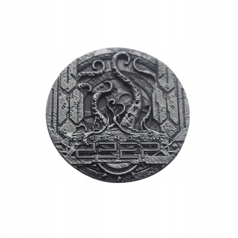 В этой категории вы найдете металлические монеты, связанные с определенными темами или названиями игр. В наборах присутствуют изделия, имитирующие золото (покрытое слоем латуни), серебро (со слоем никеля) или медь (со слоем меди). Их дизайн отсылает к постапокалипсису, фэнтези, стимпанк-играм в атмосфере средневековья, античности, космоса и романам Лавкрафта.