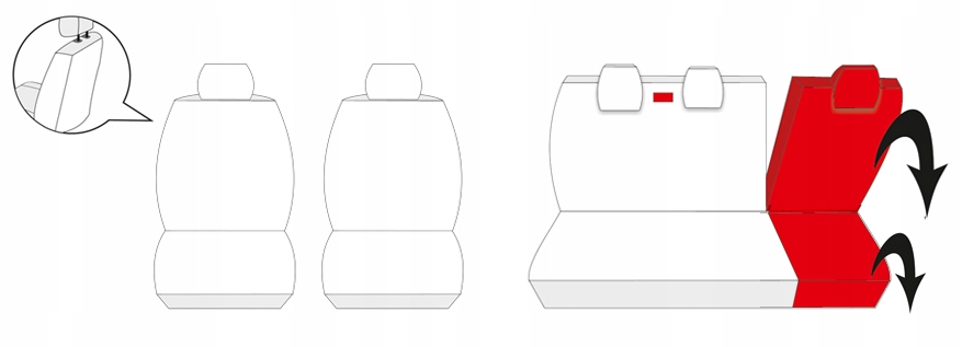 В зависимости от модели автомобиля в комплект входят чехлы на такие элементы, как передний или задний подлокотник, молнии, позволяющие использовать столики и карманы в спинках передних сидений, чехлы на складные подголовники, боковые чехлы на колесные арки (колонны).