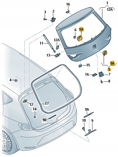 - 1x 5F0827565DRYP (Ручка замка крышки багажника, позиция № 5 на схеме)