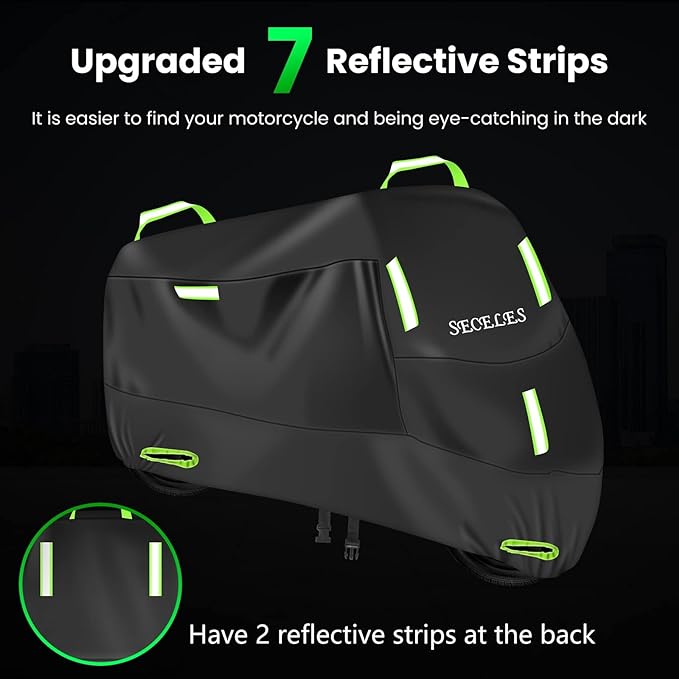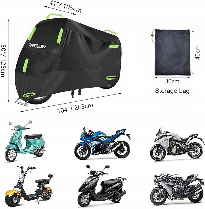 - Более высокий водостойкость 300D: этот водонепроницаемый варпал мотоцикл, сделанный из высокого качества 300D Nylon. Водонепроницаемый, чем 210D материал, доступен на рынке. Он выдерживает давление воды до 2000 мм и защищает мотоцикл от дождя, пыли и плохой погоды. Он покрывает сверху вниз. Примечание. Убедитесь, что длина крышки мотоцикла составляет 4 дюйма/10 см длиннее, чем фактическая длина мотоцикла. И вершина оснащена отражающей ручкой. Это облегчает поиск мотоцикла в темноте. Примечание. Пожалуйста, не используйте острые декоративные предметы, так как это может привести к разрыву мотоцикла. Шивы и водонепроницаемый ремешок: двойные швы увеличивают долговечность мотоциклетного брезента. Водонепроницаемая структура ремня означает, что мотоциклетная крышка лучше водонепроницаемой и не вызывает утечки воды. Kawasaki, Suzuki и т. Д. Перед покупкой измерьте мотоциклы, чтобы убедиться, что они правильны