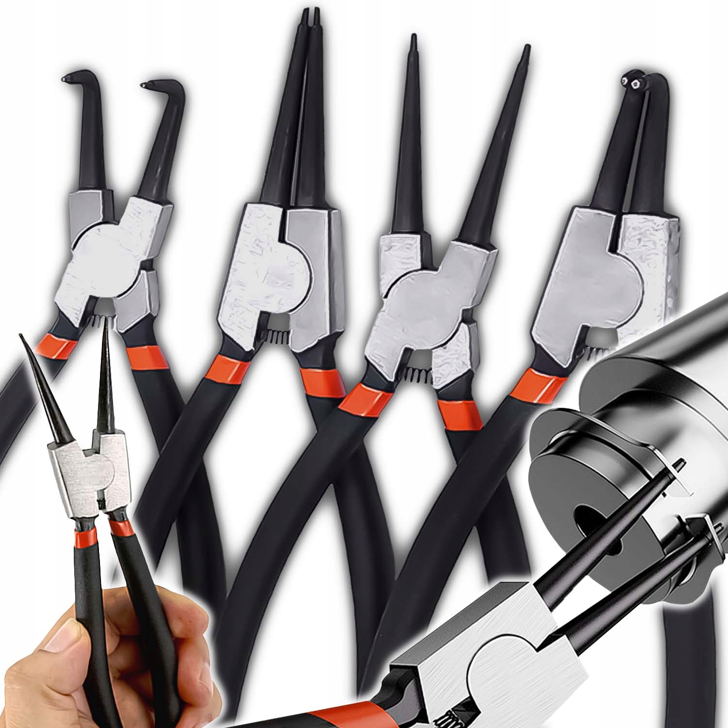 Полезно в каждом доме, мастерской и рабочем месте! Полный набор наполнит вас полной возможностью нанесения и снятия зажимов, также известных как кольца Seger. Набор включает в себя 2 пары согнутых и прямых плоскогубцев - это позволяет адаптировать инструмент к доступному рабочему месту. Каждый вид плоскогубцы также делится на инструмент растяжения и зажима.