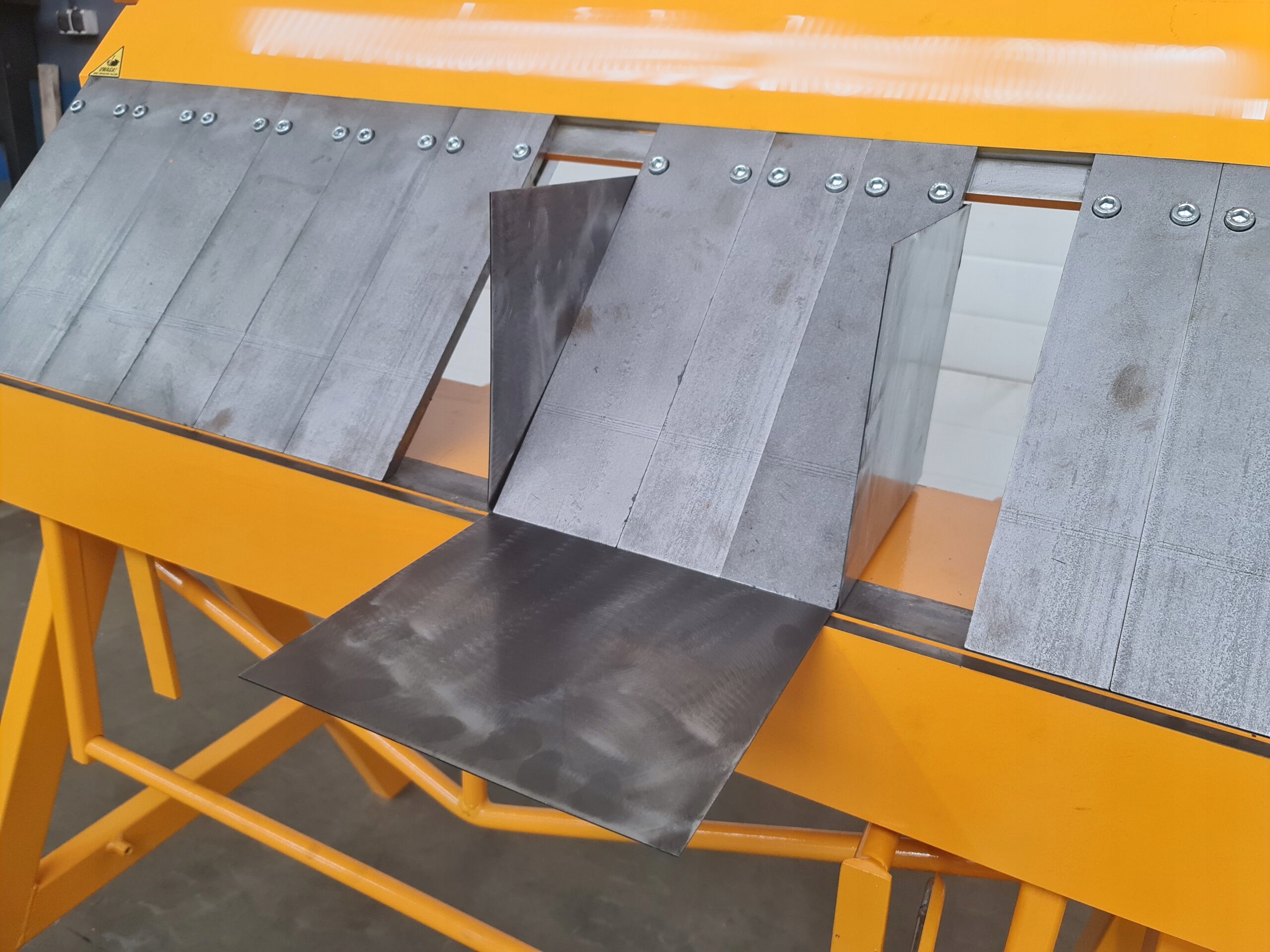 -a ограничитель наклонного листа в диапазоне 0-135 градусов-(дополнительное оборудование) - Повторяемое изгиб изгиба листового металла в четырех положениях от 0-135 градусов. Повторяемость согнутых углов будет получена путем ручного расположения ограничителя угла. Конструкция сопротивления позволяет им исполнить 180 °, а их возвращение в то же место. Очень полезен для режущего металла. Передние ограничители используются в повторяющихся работах. Они сохраняют ту же длину разрезаного листового металла много раз. Быстрое и тщательное измерение разрезанного листового металла можно получить с помощью установленного измерения измерения. коробки с дополнительными отходами внутрь.