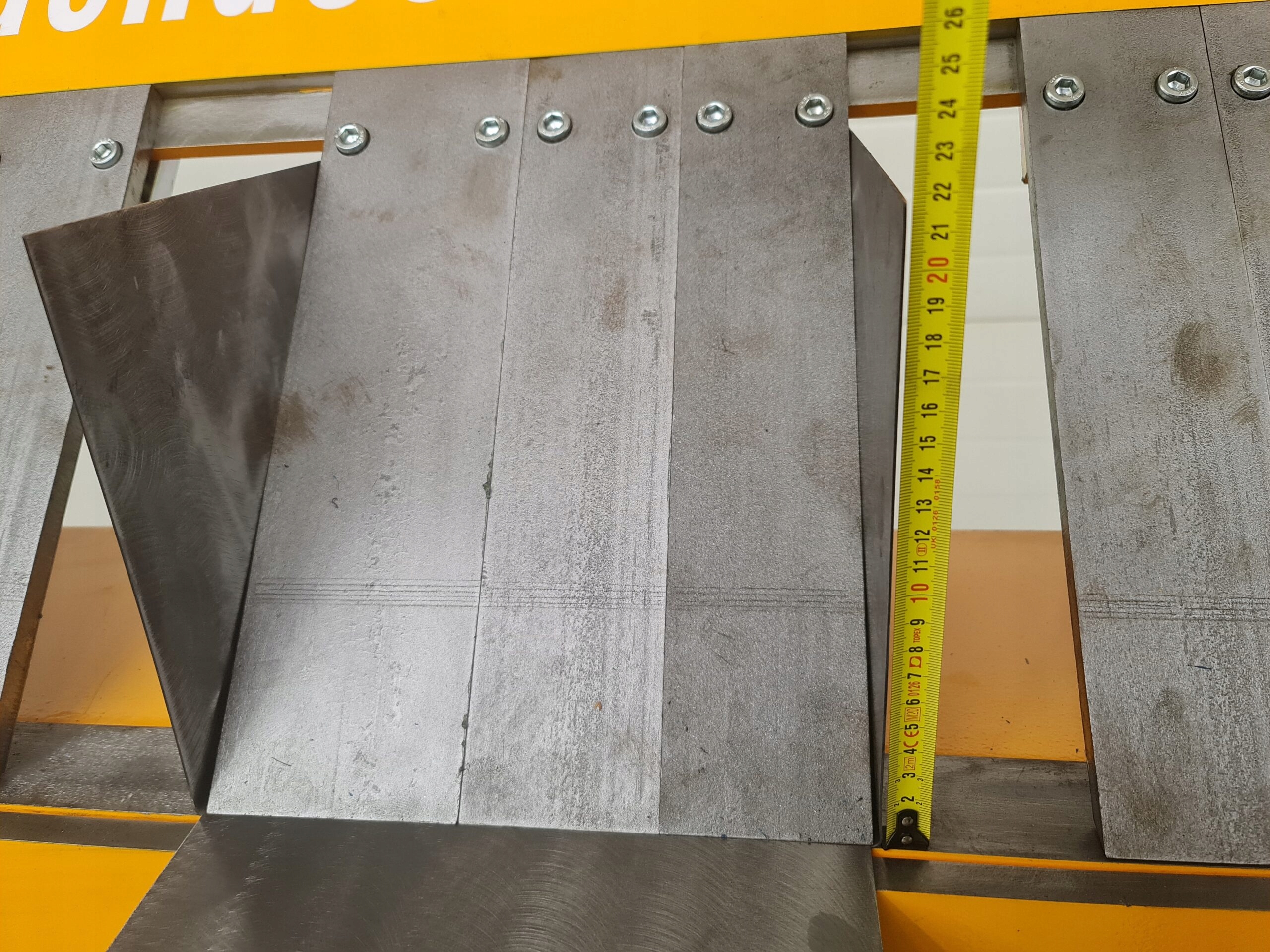 - Задняя стола, оснащенная сопротивлением (1000 мм) - позволяет размещать листовой металл и свободное движение. Это может быть использовано в качестве места, чтобы положить листы. Оборудован по шкале, который позволяет точно устанавливать изогнутый и разрезанный листовой металл.